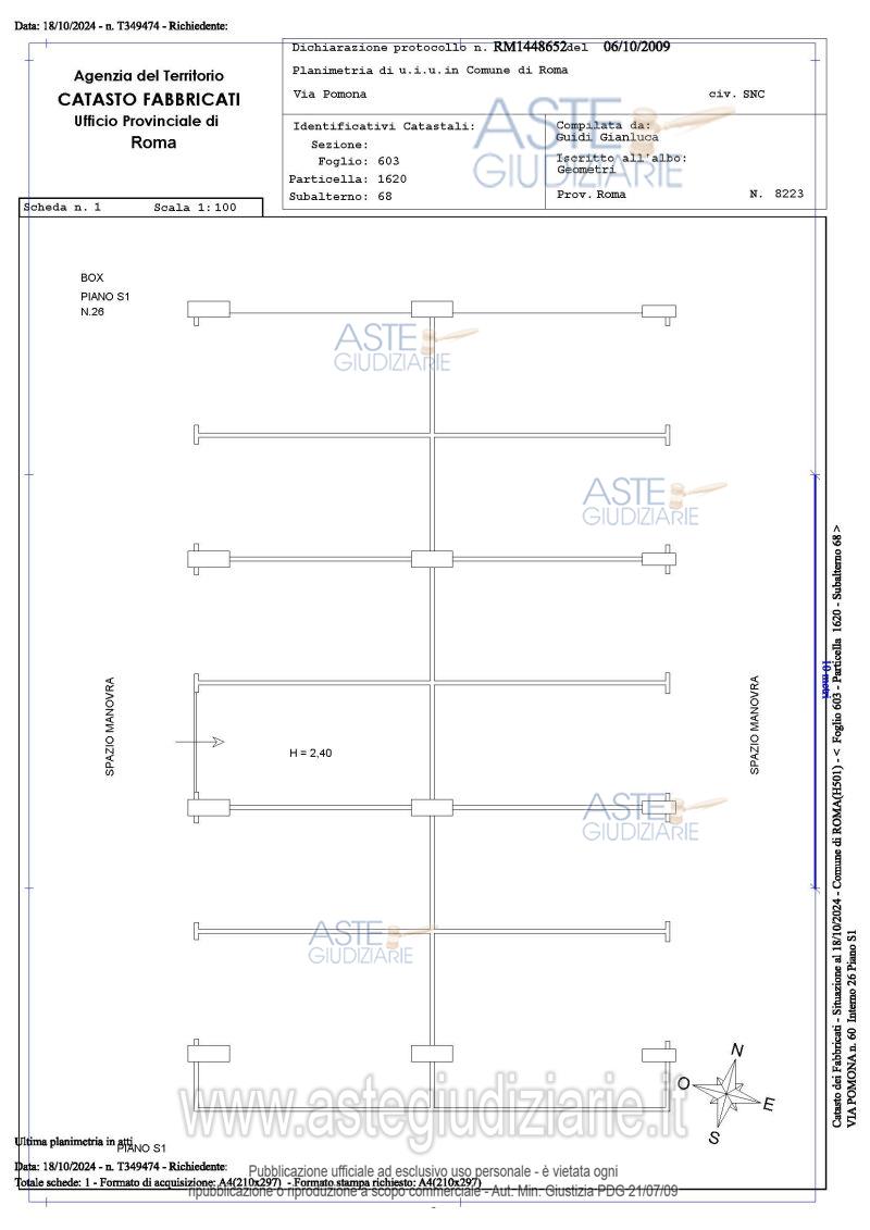 Vendita all'asta Senza incanto, con gara telematica asincrona - LOTTO 19: Proprietà piena ed esclusiva di box auto sito in Roma Capitale, zona Pietralata, via Pomona, 60, piano S1, int. 26. Prezzo base € 15.300,00 (offerta minima € 11.475,00). Data inizio operazioni di vendita: 24/03/2026 ore 14:00. Giudice Dott. Romolo Ciufolini. Professionista delegato alla vendita Avv. Luca Bernardini. Custode Giudiziario I.V.G Di Roma S.R.L. Istituto Vendite Giudiziarie - Email "pubblicita@ivgroma.it"; Tel. 06 83751500. Rif. Tribunale di Roma - Esecuzione immobiliare post legge 80 n. 409/2022