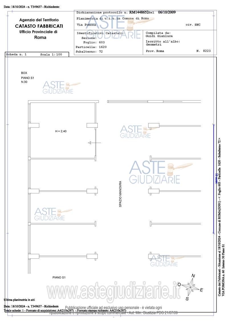 Vendita all'asta Senza incanto, con gara telematica asincrona - LOTTO 23: Proprietà piena ed esclusiva di box auto sito in Roma Capitale, zona Pietralata, via Pomona, 60, piano S1, int. 30. Prezzo base € 18.432,00 (offerta minima € 13.824,00). Data inizio operazioni di vendita: 03/06/2026 ore 14:00. Giudice Dott. Raffaele Russo. Professionista delegato alla vendita Avv. Luca Bernardini. Custode Giudiziario Ivg Di Roma Srl - Email "pvp@visiteivgroma.it"; Tel. 0689569801. Rif. Tribunale di Roma - Esecuzione immobiliare post legge 80 n. 409/2022