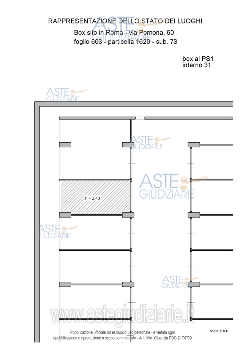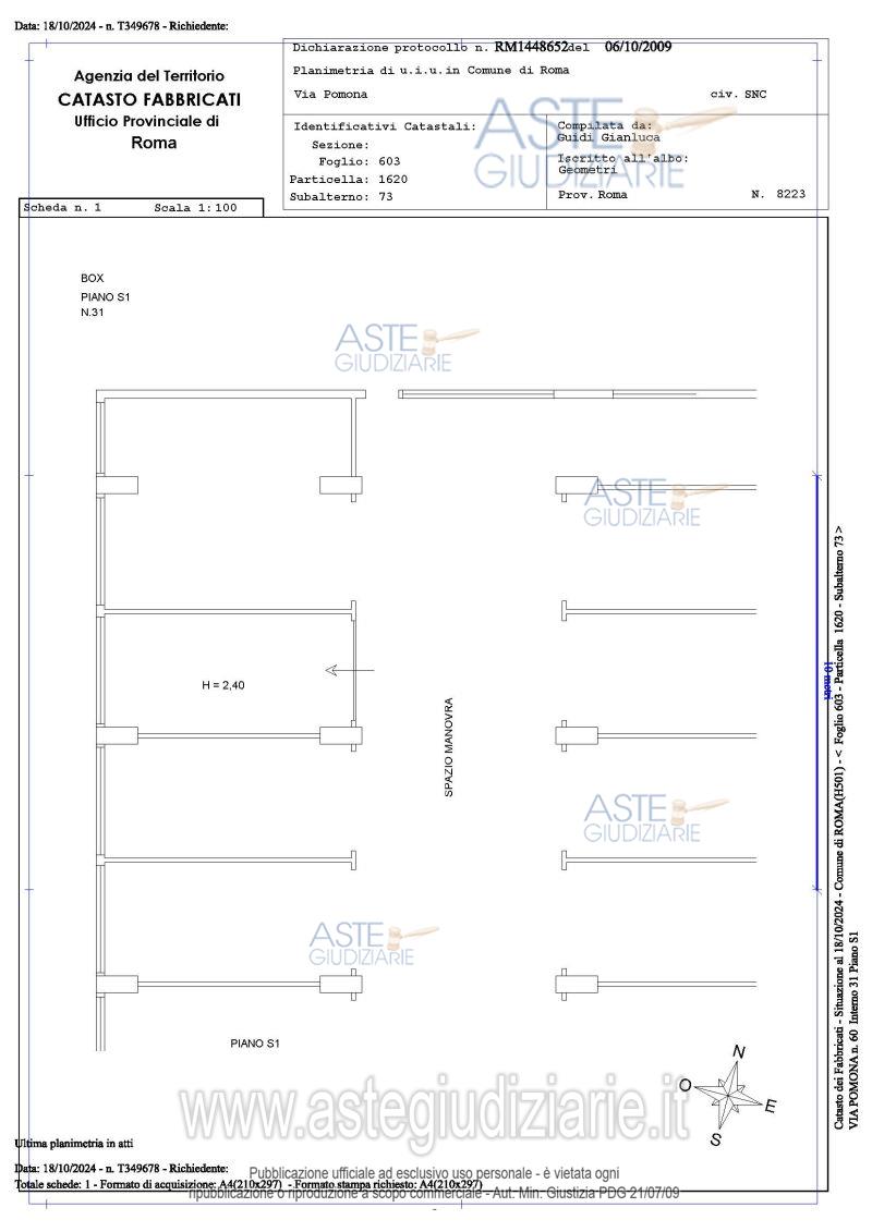 Vendita all'asta Senza incanto, con gara telematica asincrona - LOTTO 24: Proprietà piena ed esclusiva di box auto sito in Roma Capitale, zona Pietralata, via Pomona, 60, piano S1, int. 31. Prezzo base € 12.312,00 (offerta minima € 9.234,00). Data inizio operazioni di vendita: 03/06/2026 ore 14:00. Giudice Dott. Raffaele Russo. Professionista delegato alla vendita Avv. Luca Bernardini. Custode Giudiziario Ivg Di Roma Srl - Email "pvp@visiteivgroma.it"; Tel. 0689569801. Rif. Tribunale di Roma - Esecuzione immobiliare post legge 80 n. 409/2022