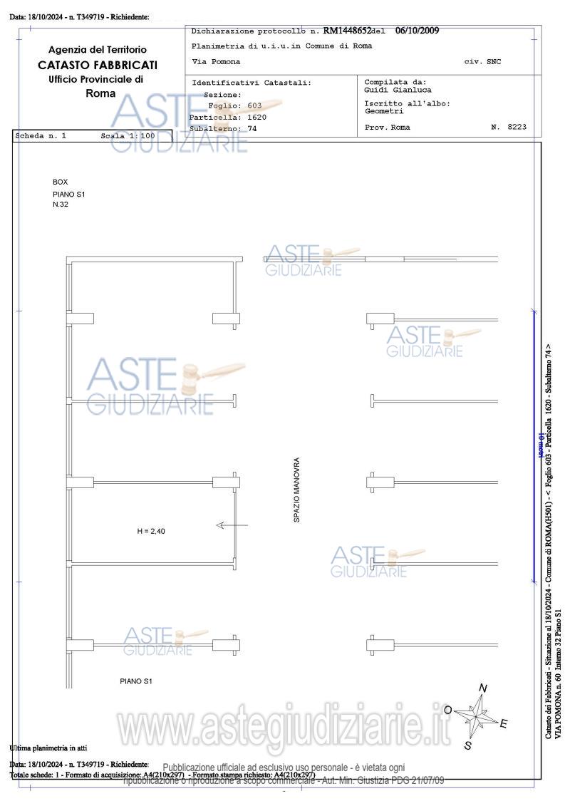 Vendita all'asta Senza incanto, con gara telematica asincrona - LOTTO 25: Proprietà piena ed esclusiva di box auto sito in Roma Capitale, zona Pietralata, via Pomona, 60, piano S1, int. 32. Prezzo base € 11.664,00 (offerta minima € 8.748,00). Data inizio operazioni di vendita: 03/06/2026 ore 14:00. Giudice Dott. Raffaele Russo. Professionista delegato alla vendita Avv. Luca Bernardini. Custode Giudiziario Ivg Di Roma Srl - Email "pvp@visiteivgroma.it"; Tel. 0689569801. Rif. Tribunale di Roma - Esecuzione immobiliare post legge 80 n. 409/2022