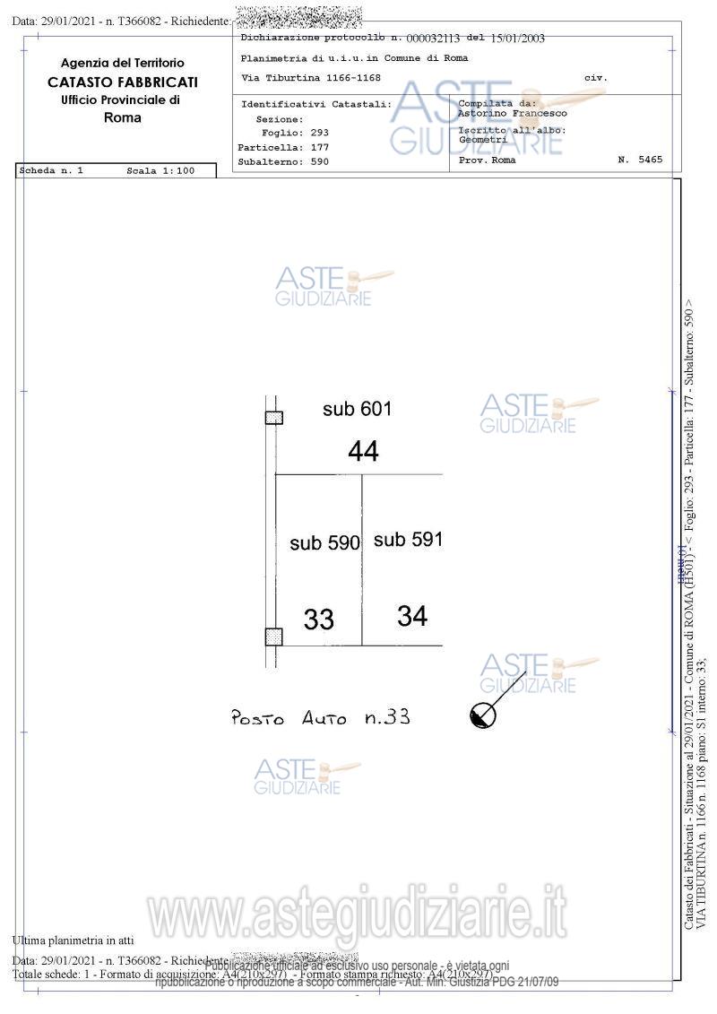 Vendita all'asta Senza incanto, con gara telematica asincrona - LOTTO 1: Quota pari a 1/1 del diritto di piena proprietà su posto auto, al piano interrato del complesso commerciale in Roma, Via Tiburtina nn. 1166/1168, interno 33, superficie circa 14 mq. Il posto auto è occupato da terzi senza titolo opponibile alla procedura, in corso di liberazione. Trasferimento soggetto a IVA su opzione da parte della società esecutata/cedente, esercitabile dopo l’aggiudicazione. Il tutto come meglio descritto nell’elaborato peritale in atti a cui espressamente si rinvia. Prezzo base € 11.000,00 (offerta minima € 8.250,00). Data inizio operazioni di vendita: 20/04/2026 ore 11:00. Giudice Dott. Miriam Iappelli. Professionista delegato alla vendita Avv. Dora La Motta. Custode Giudiziario Ivg Di Roma Srl - Email "pvp@visiteivgroma.it"; Tel. 0689569801. Rif. Tribunale di Roma - Esecuzione immobiliare post legge 80 n. 1658/2019