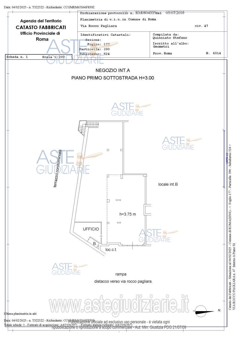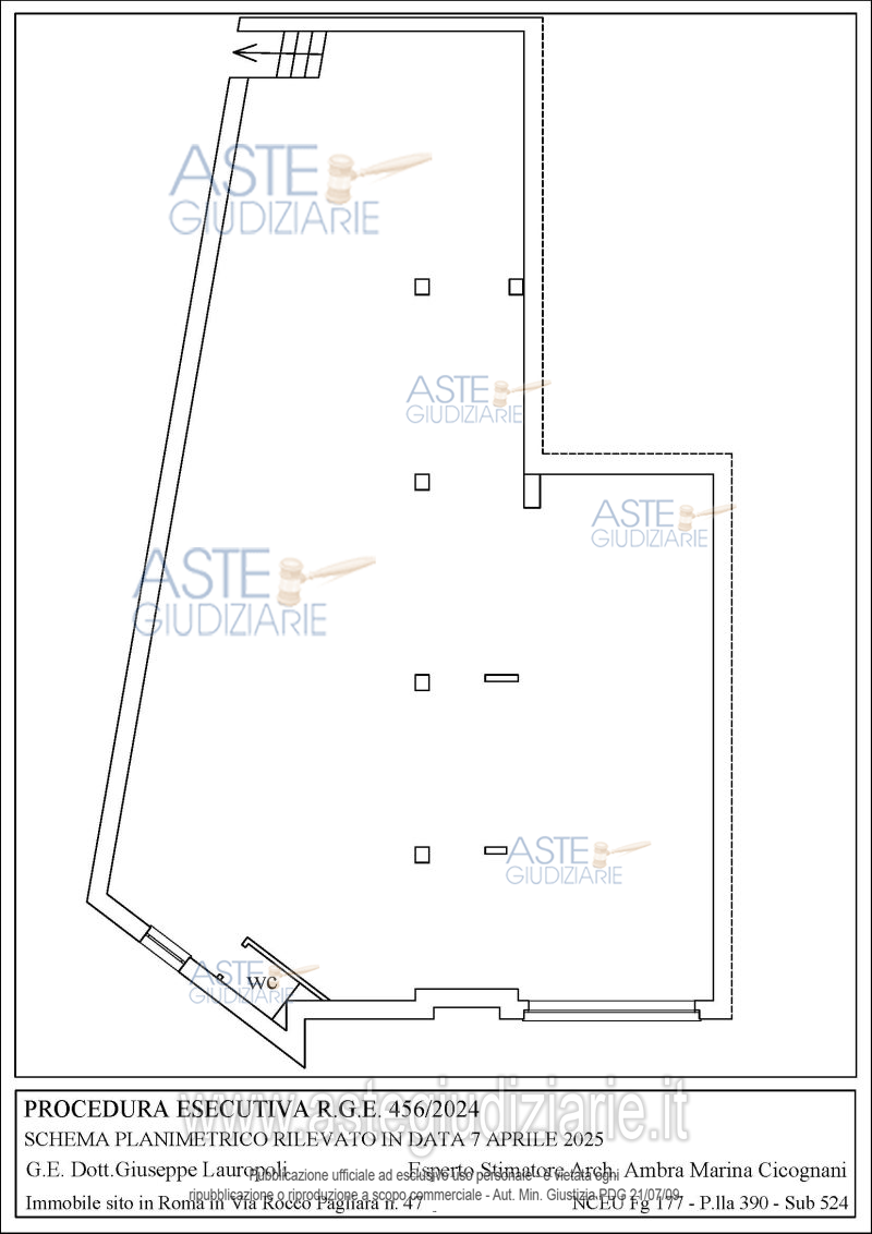 Vendita all'asta Senza incanto, con gara telematica asincrona - LOTTO UNICO: Locale sito in Roma, Via Rocco Pagliara n. 47, interno A, piano S1, costituito da un unico ambiente e da un servizio igienico, di complessivi mq 225,00 di superficie lorda. Prezzo base € 202.000,00 (offerta minima € 151.500,00). Data inizio operazioni di vendita: 26/05/2026 ore 14:00. Giudice Dott. Giuseppe Lauropoli. Professionista delegato alla vendita Avv. Miryam Camilleri. Custode Giudiziario Ivg Di Roma Srl - Email "pvp@visiteivgroma.it"; Tel. 0689569801. Rif. Tribunale di Roma - Espropriazione immobiliare (cartabia) n. 456/2024