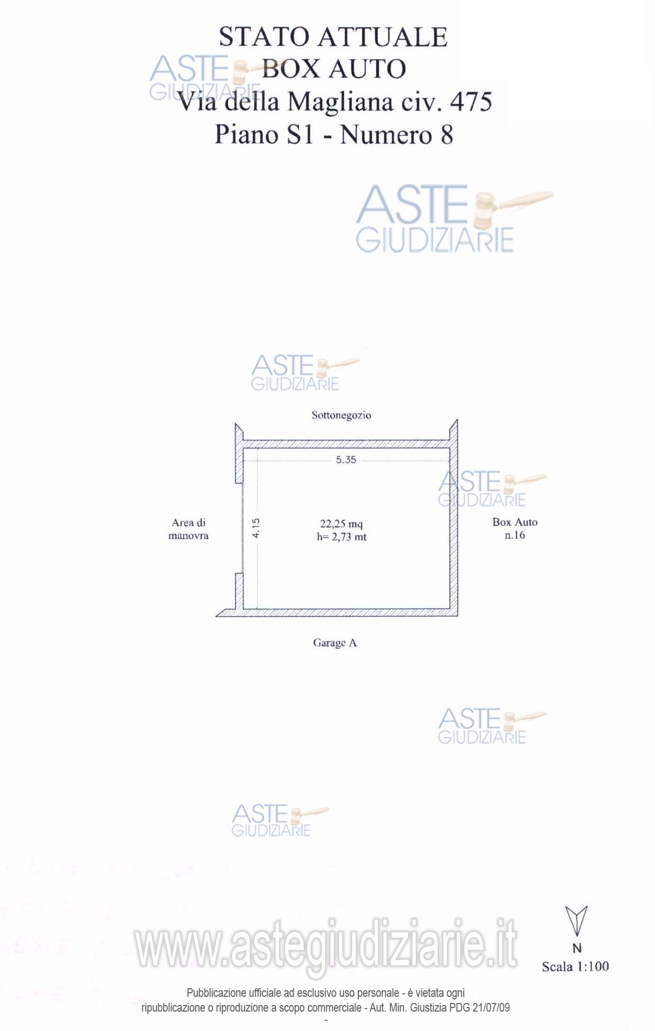 Vendita all'asta Senza incanto, con gara telematica asincrona - LOTTO 5: Garage mit einer Fußbodenfläche von etwa 22,25 Quadratmetern, befindet sich im Untergeschoss 1 - Innenraum 8. Prezzo base € 8.640,00. Data inizio operazioni di vendita: 20/05/2026 ore 10:30. Professionista delegato alla vendita Dott. Andrea Russo - Tel. 0692936138. Liquidazione coatta n. 62/2025