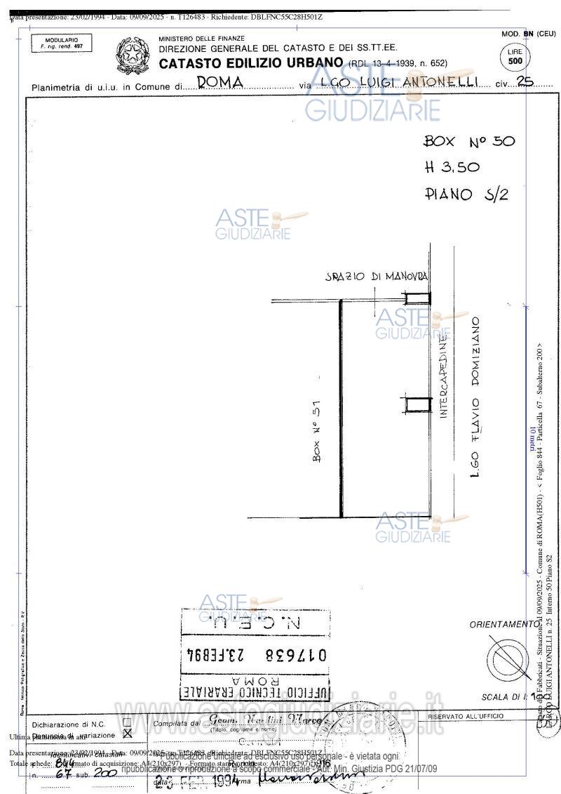 Vendita all'asta Senza incanto, con gara telematica asincrona - LOTTO 1: n. 2 box auto siti in Roma (RM), Largo Lugi Antonelli n. 25, piano S2, distinti con gli int. 50 e int. 51, di fatto accorpati in un unico locale con serranda basculante di accesso e ampio soppalco in ferro, per complessivi mq 55,07 circa convenzionali. Prezzo base € 65.000,00 (offerta minima € 48.750,00). Data inizio operazioni di vendita: 11/06/2026 ore 14:00. Giudice Dott. Giuseppe Lauropoli. Professionista delegato alla vendita Avv. Alessandra Torelli. Custode Giudiziario Ivg Di Roma Srl - Email "pvp@visiteivgroma.it". Rif. Tribunale di Roma - Esecuzione immobiliare post legge 80 n. 29/2022