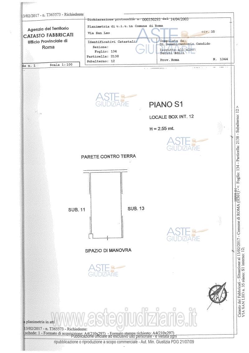 Vendita in attesa dell'emissione del nuovo bando d'asta. LOTTO 154: Lotto n. 7.4 Autorimessa Via San Leo n. 35. Ultimo prezzo base € 4.334,00 (offerta minima € 4.334,00). Giudice Dott. Francesca Vitale. Professionista delegato alla vendita Not. Fabio Orlandi. Curatore Avv. Gian Luca Righi - Email "segreteria@studiolegalerighi.com"; Tel. 0668135702. Rif. Tribunale di Roma - Fallimentare (nuovo rito) n. 335/2015