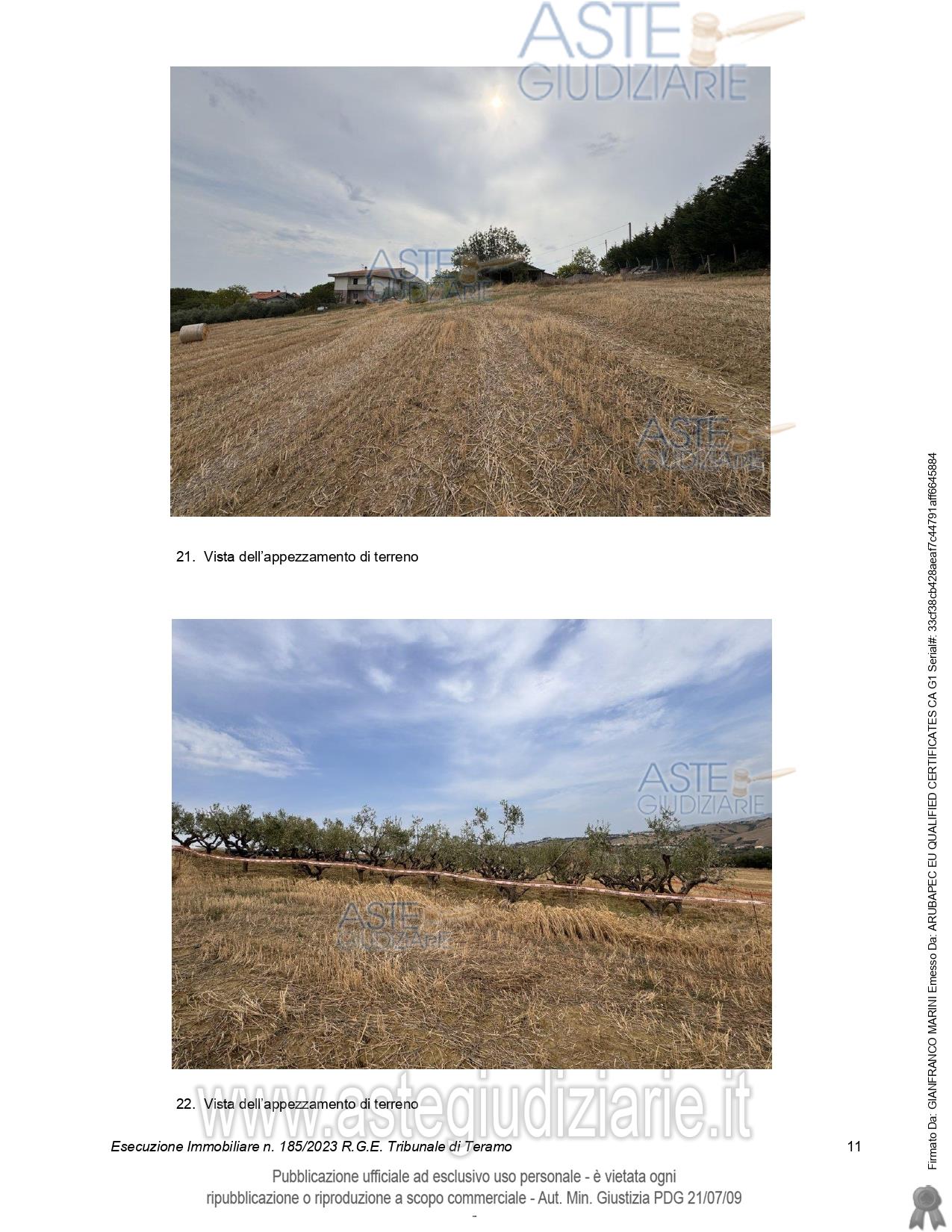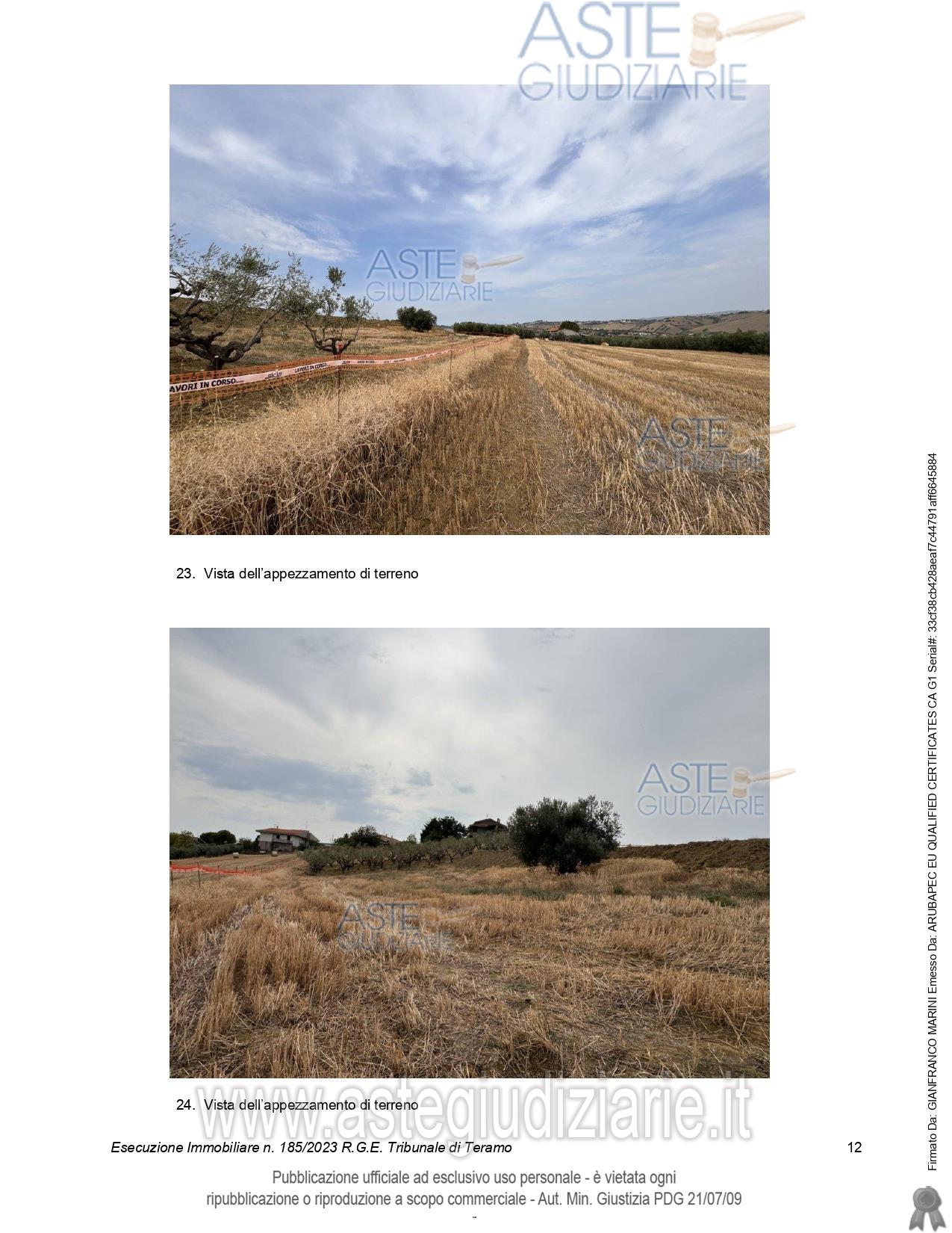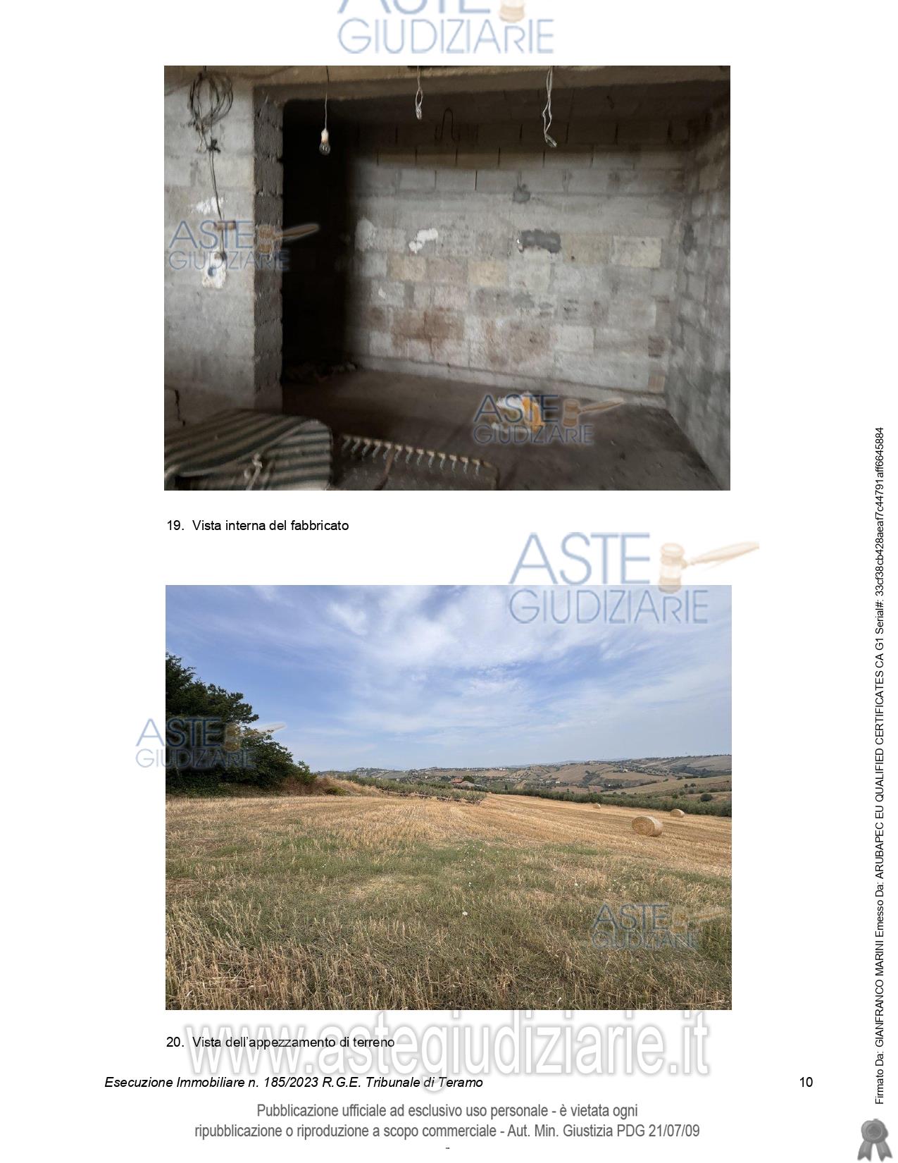 Vendita all'asta Senza incanto, con gara telematica asincrona - LOTTO UNICO: Fabbricato in stato di abbandono con annessi e appezzamento di terreno di forma irregolare avente superficie complessiva di mq. 9.627, il tutto sito in Roseto degli Abruzzi (TE) in Contrada Solagna, località Frischia, in zona collinare con prevalente esposizione a nord-ovest. Prezzo base € 35.625,00 (offerta minima € 26.718,75). Data inizio operazioni di vendita: 04/03/2026 ore 15:30. Giudice Dott. Ninetta D'ignazio. Professionista delegato alla vendita Avv. Lara Massucci - Email "lara.massucci@studiomassucci.it"; Cell. 3331373088; Tel. 0861810094. Custode Giudiziario Avv. Lara Massucci - Email "lara.massucci@studiomassucci.it"; Tel. 0861810094. Rif. Tribunale di Teramo - Espropriazione immobiliare (cartabia) n. 185/2023