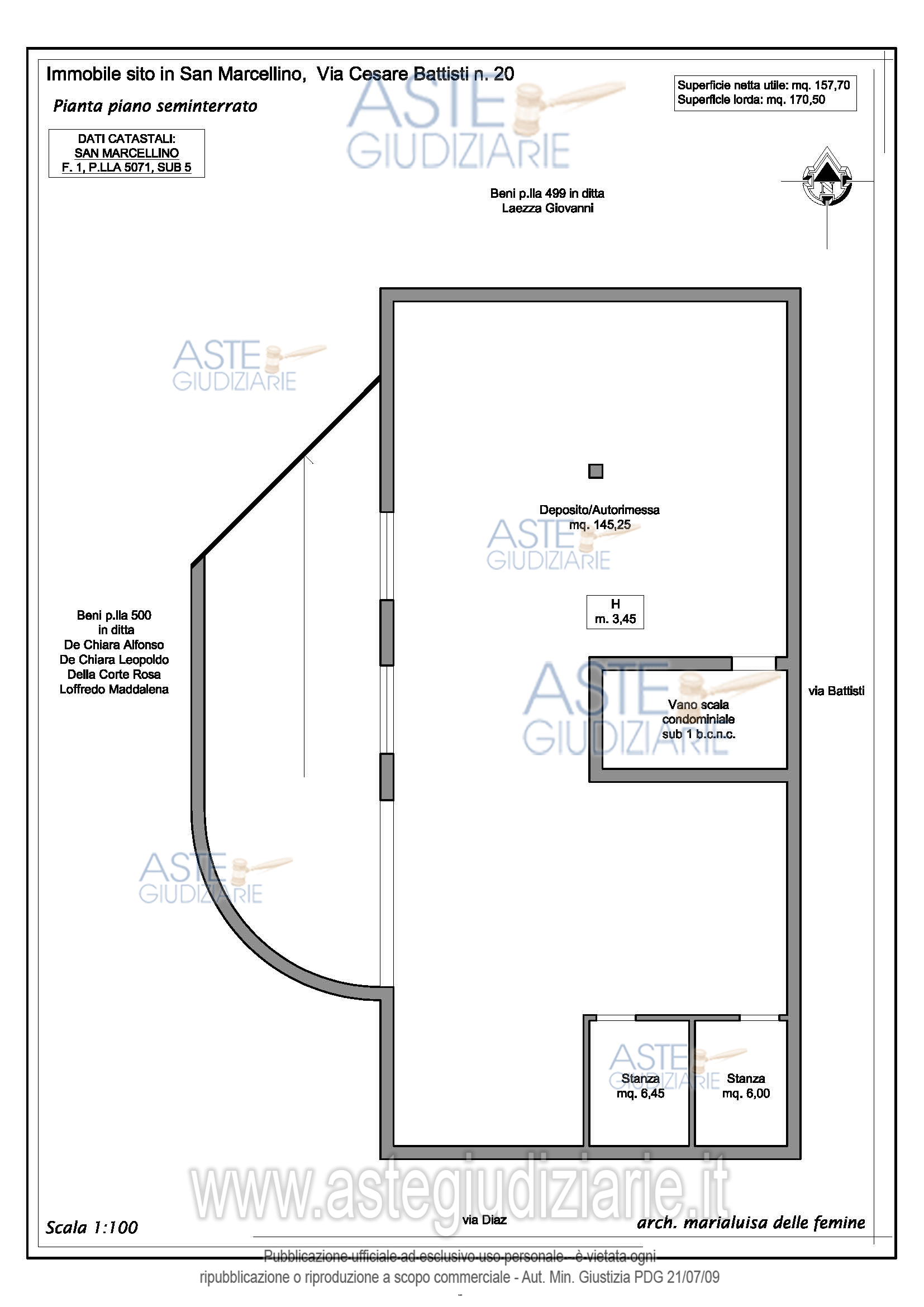 Vendita all'asta Senza incanto, con gara telematica asincrona - LOTTO UNICO: Piena ed intera proprietà di autorimessa/deposito al piano seminterrato, ubicato in San Marcellino, alla