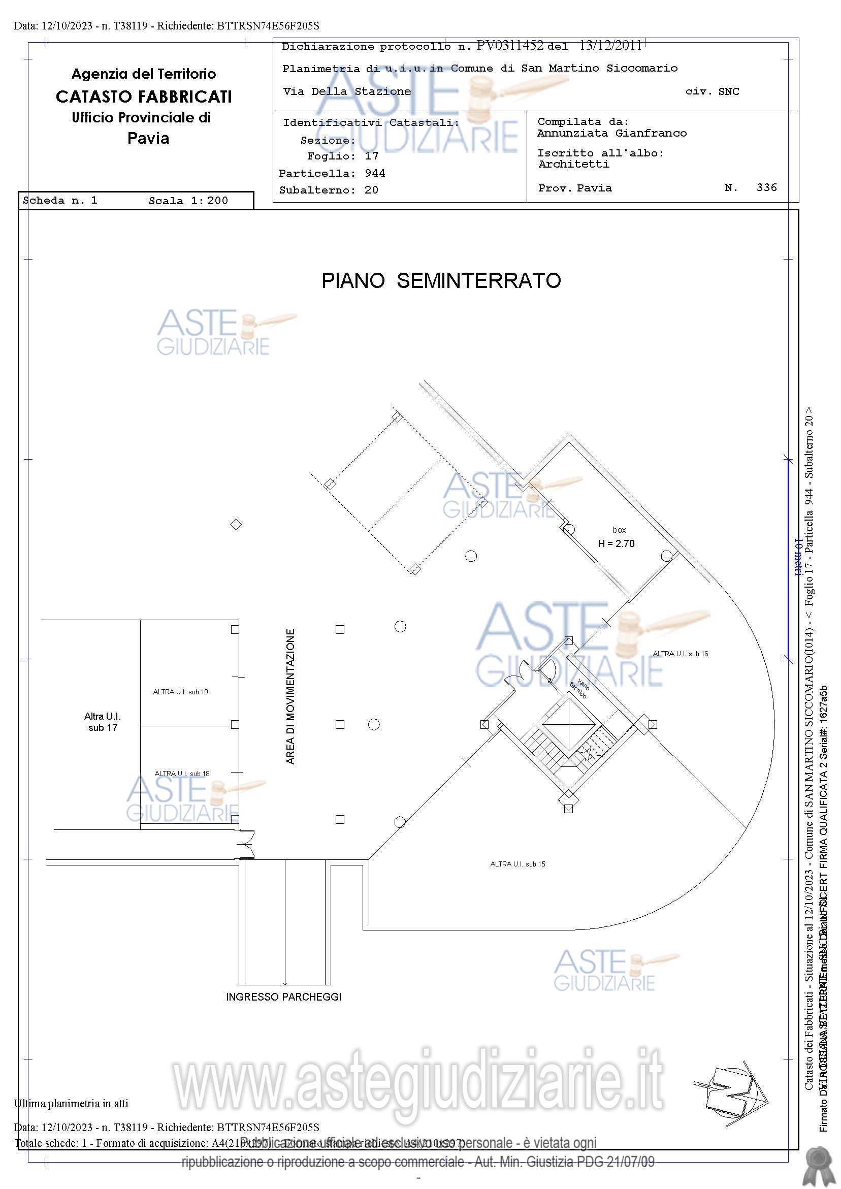 Vendita all'asta Senza incanto, con gara telematica asincrona - LOTTO 21: Autorimessa a piano seminterrato-al prezzo si applica l'iva . Prezzo base € 5.663,00 (offerta minima € 4.248,00). Data inizio operazioni di vendita: 26/03/2026 ore 15:00. Giudice Dott. Erminio Rizzi. Professionista delegato alla vendita Not. Lorenzo Casella - Email "notai@paviaesecuzioni.it"; Tel. 0382 34728. Custode Giudiziario Istituto Vendite Giudiziarie Pavia - Email "immobiliare@ivgpavialodi.it"; Tel. 0382539013. Rif. Tribunale di Pavia - Espropriazione immobiliare (cartabia) n. 288/2023