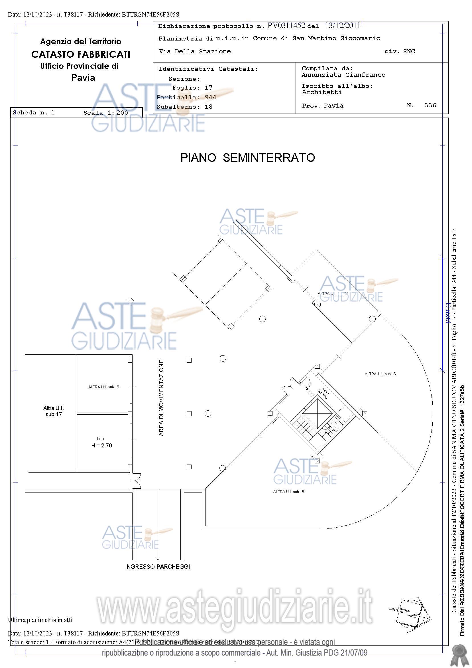 Vendita all'asta Senza incanto, con gara telematica asincrona - LOTTO 19: Autorimessa mq. 23 piano S1. Prezzo base € 8.850,00 (offerta minima € 6.638,00). Data inizio operazioni di vendita: 26/03/2026 ore 15:00. Giudice Dott. Erminio Rizzi. Professionista delegato alla vendita Not. Lorenzo Casella - Email "notai@paviaesecuzioni.it"; Tel. 0382 34728. Custode Giudiziario Istituto Vendite Giudiziarie Pavia - Email "immobiliare@ivgpavialodi.it"; Tel. 0382539013. Rif. Tribunale di Pavia - Espropriazione immobiliare (cartabia) n. 288/2023