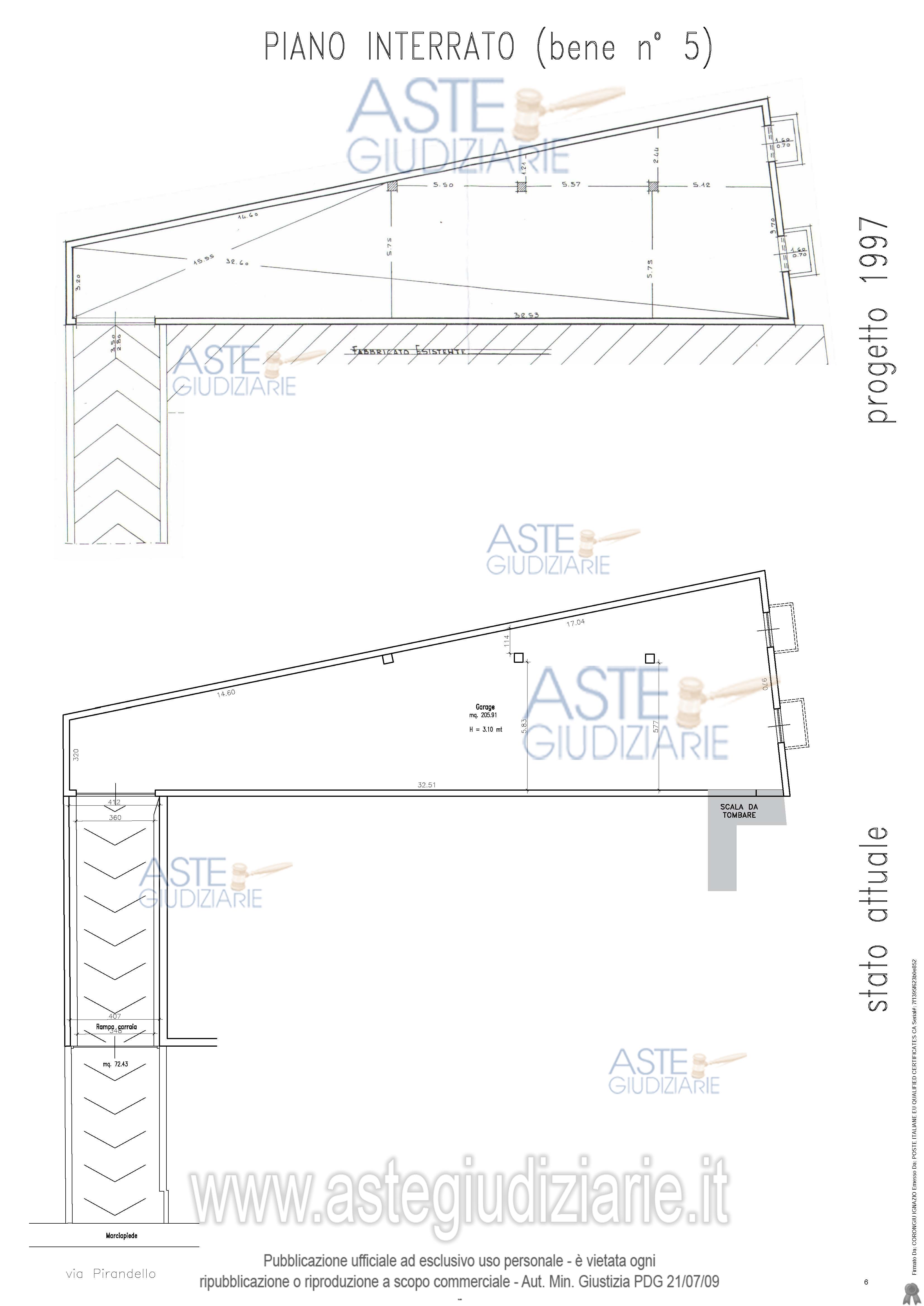 Vendita all'asta Senza incanto, con gara telematica asincrona - LOTTO 5: “locale garage” posto in Sanluri nella via L. Pirandello 10/G, distinto al NCEU al fg. 28, part. 1676 sub.8, piano S1, cat. C/6 classe U, consist. 206 mq., superf. catastale mq.236, rendita €.521,31. Prezzo base € 20.153,00 (offerta minima € 15.115,00). Data inizio operazioni di vendita: 23/06/2026 ore 16:00. Giudice Silvia Cocco. Professionista delegato alla vendita Avv. Emanuele Lai - Email "emanulai@tiscali.it"; Cell. 3497898751; Tel. 070497101. Custode Giudiziario Ivg Cagliari - Email "ivg.visiteimmobili@tiscali.it"; Tel. 0702299036. Rif. Tribunale di Cagliari - Esecuzione immobiliare post legge 80 n. 410/2021