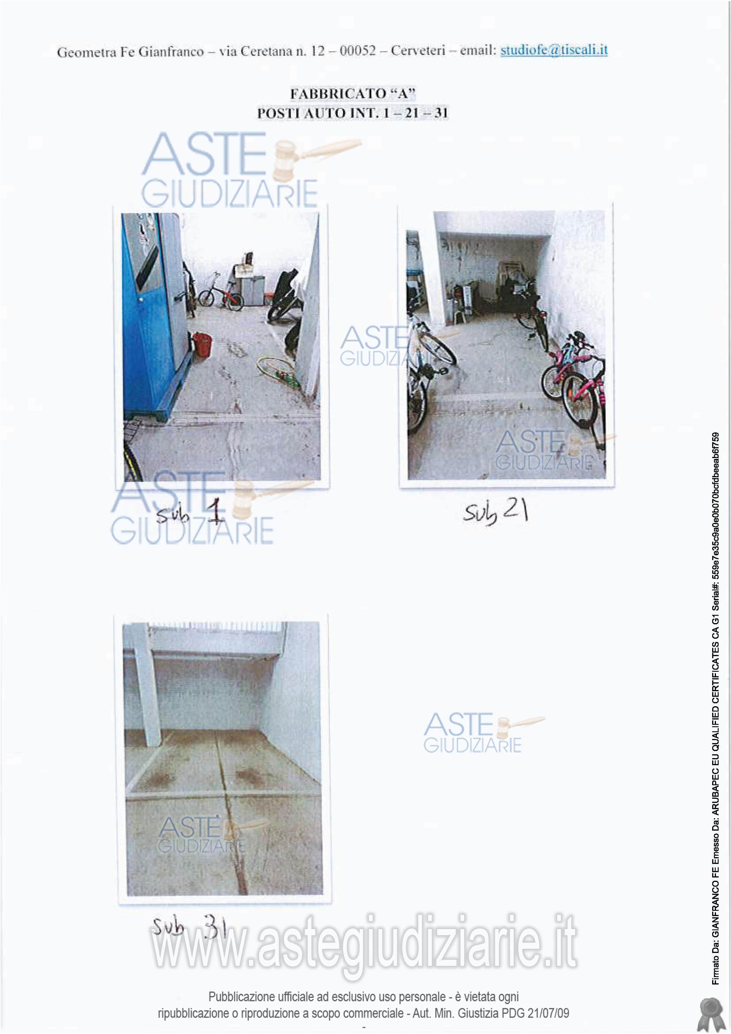 Vendita all'asta Senza incanto, con gara telematica asincrona - LOTTO 1: Posto Auto PA - A21 al piano interrato di mq 10,75, l’accesso avviene tramite rampa carrabile con apertura del cancello automatizzata, è dotato di impianto di illuminazione condominiale. L’intero parcheggio è stato realizzato completamente in cemento armato. Prezzo base € 2.531,25 (offerta minima € 1.898,44). Data inizio operazioni di vendita: 24/11/2025 ore 15:00. Giudice Dott. Francesco Vigorito. Professionista delegato alla vendita Avv. Alessia Marchi. Custode Giudiziario Avv. Alessia Marchi. Rif. Tribunale di Civitavecchia - Esecuzione immobiliare post legge 80 n. 219/2022