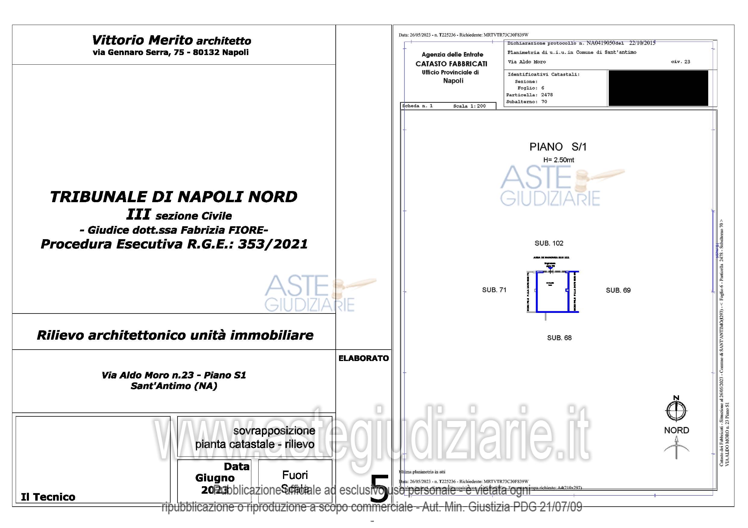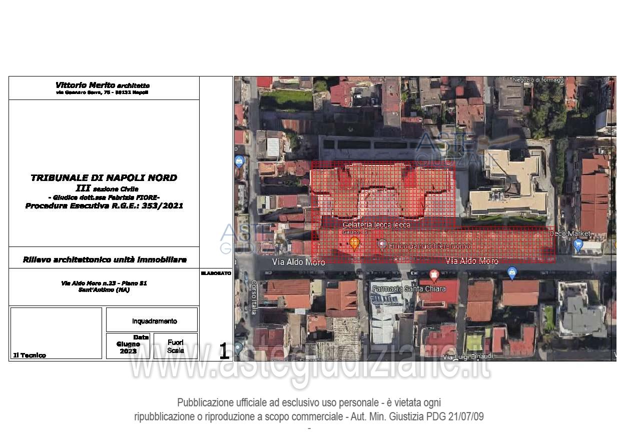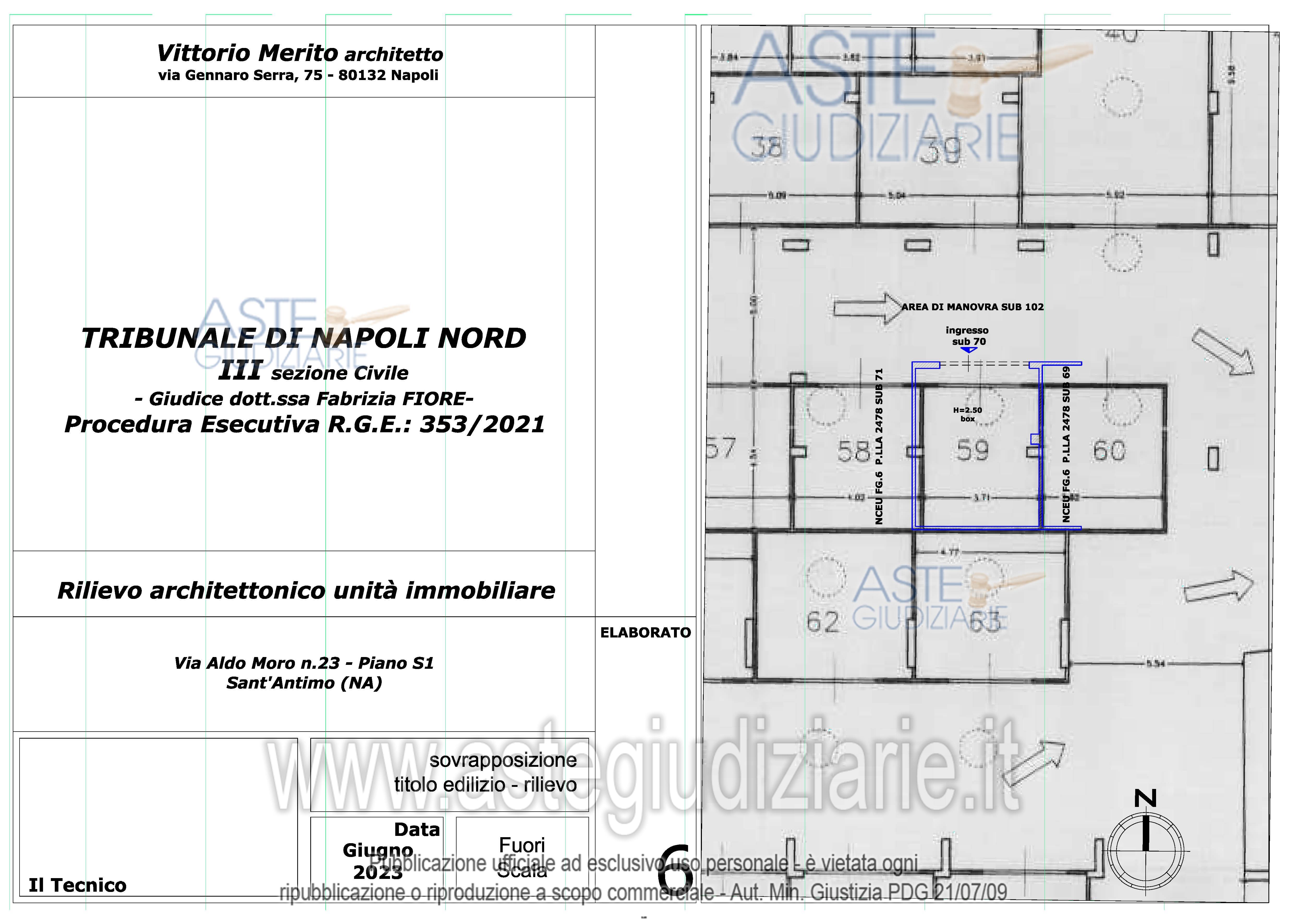 Vendita all'asta Senza incanto, con gara telematica asincrona - LOTTO 41: LOTTO QUARANTUNO - Garage sito nel Comune di Sant’Antimo (Na) via Aldo Moro 21, piano S1“Parco Omissis”, composto da un locale box; riportato nel NCEU del Comune di Sant’Antimo, foglio 6, particella 2478, sub. 70, cat. C/6, classe 3, consistenza 19 mq, sup. cat. 20 mq, rendita € 42,19 il descritto stato dei luoghi corrisponde alla consistenza catastale. Il bene de quo risulta libero e, per quanto dichiarato in sede di accesso, nella disponibilità dell’esecutato . Prezzo base € 9.400,00 (offerta minima € 7.050,00). Data inizio operazioni di vendita: 27/11/2025 ore 16:00. Custode Giudiziario Dott. Francesco Russo - Email "studiocasillorusso@libero.it"; Tel. 0815404454. Rif. Tribunale di Napoli Nord - Esecuzione immobiliare post legge 80 n. 353/2021