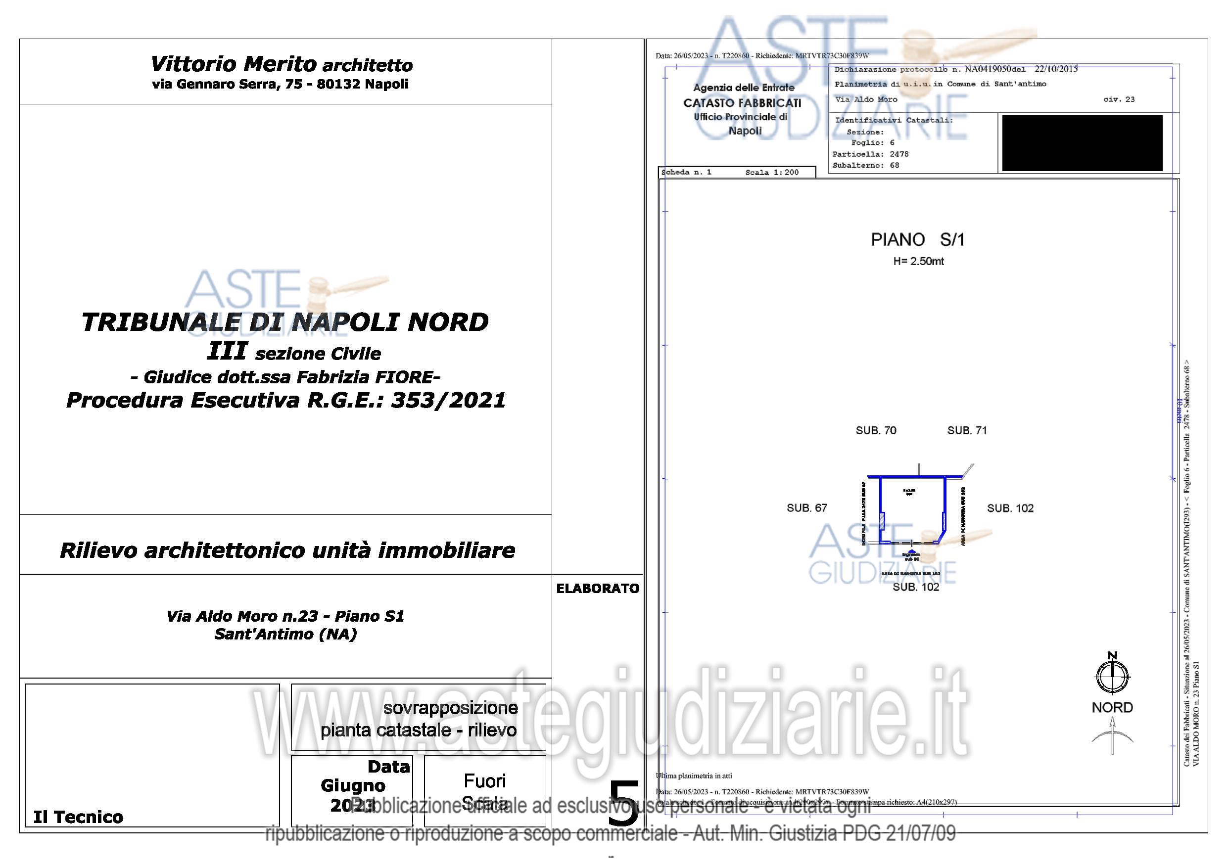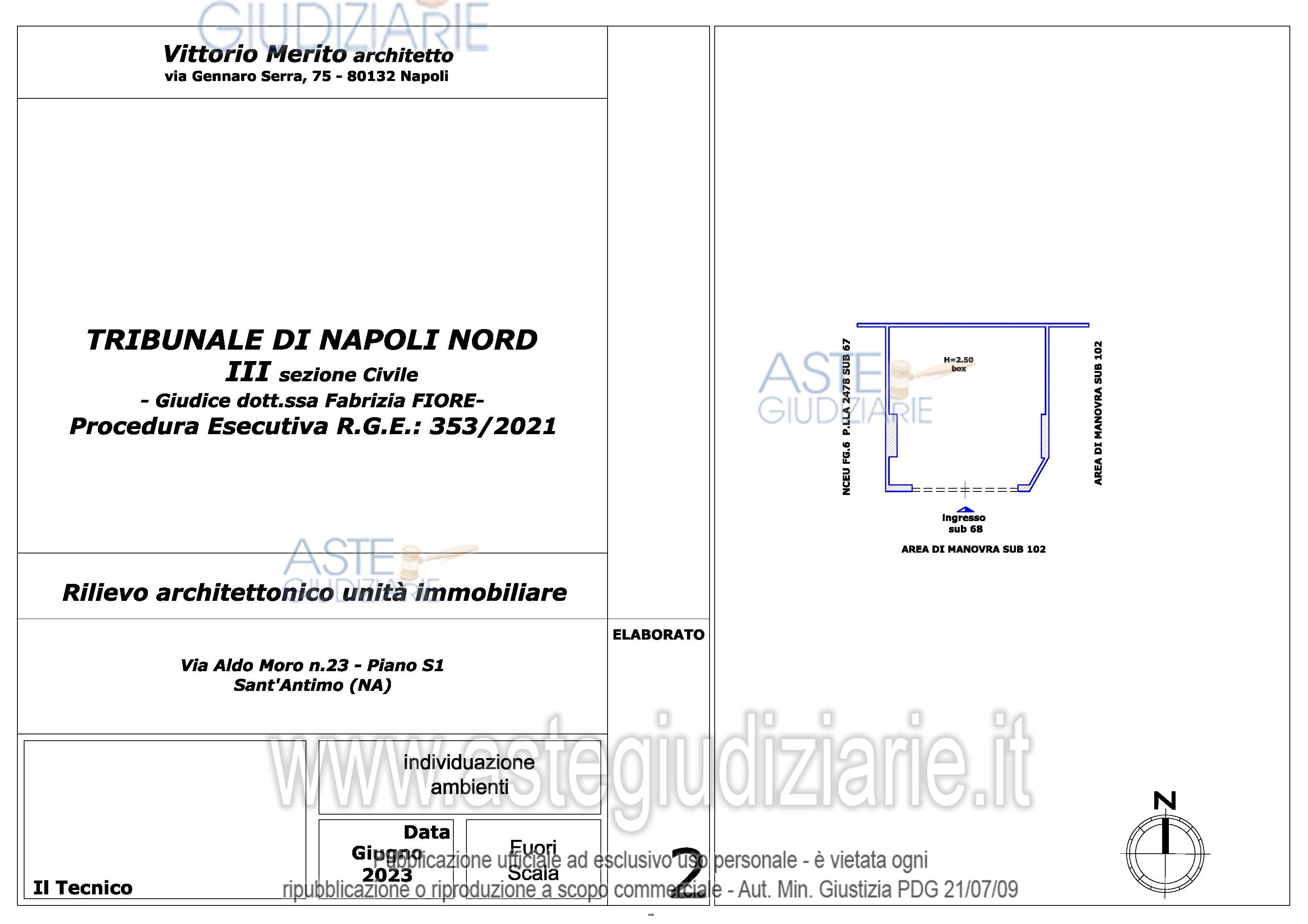 Vendita all'asta Senza incanto, con gara telematica asincrona - LOTTO 39: LOTTO TRENTANOVE - Garage, sito nel Comune di Sant’Antimo (Na) via Aldo Moro 21, piano S1 “Parco Omissis”, composto da un locale box; riportato nel NCEU del Comune di Sant’Antimo, foglio 6, particella 2478, sub. 68, cat. C/6, classe 3, consistenza 22 mq, sup. cat. 24 mq. Il bene de quo risulta libero e, per quanto dichiarato in sede di accesso, nella disponibilità dell’esecutato. . Prezzo base € 11.500,00 (offerta minima € 8.625,00). Data inizio operazioni di vendita: 27/11/2025 ore 16:00. Custode Giudiziario Dott. Francesco Russo - Email "studiocasillorusso@libero.it"; Tel. 0815404454. Rif. Tribunale di Napoli Nord - Esecuzione immobiliare post legge 80 n. 353/2021