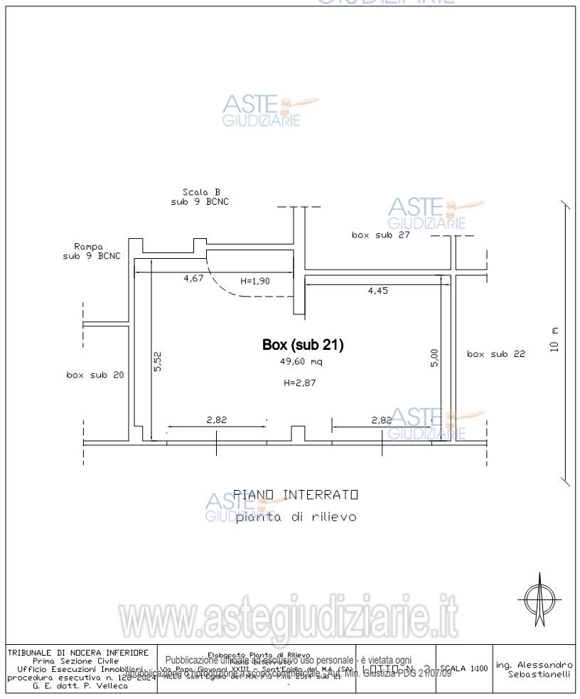 Vendita all'asta Senza incanto, con gara telematica asincrona - LOTTO 3: Piena ed esclusiva proprietà di un box doppio al piano seminterrato in un edificio di più piani (seminterrato, terra, primo, secondo e terzo), ubicato nel comune di Sant’Egidio del Monte Albino (SA) alla via Dante Alighieri snc. Il lotto 3 è un box-garage doppio di forma rettangolare che ha una superficie calpestabile di 49 mq e commerciale di 55 e si trova sulla corsia sud. Vi sono due porte di chiusura con due serrande in ferro al momento non motorizzate. Prezzo base € 51.500,00 (offerta minima € 38.625,00). Data inizio operazioni di vendita: 05/02/2026 ore 16:00. Giudice Dott. Pasquale Velleca. Professionista delegato alla vendita Avv. Giovanni Calvanese - Email "GIOCALVANESE@VIRGILIO.IT"; Cell. 3293718198; Tel. 0815138807. Custode Giudiziario Avv. Giovanni Calvanese - Email "GIOCALVANESE@VIRGILIO.IT"; Cell. 3293718198; Tel. 0815138807. Rif. Tribunale di Nocera Inferiore - Espropriazione immobiliare (cartabia) n. 128/2024