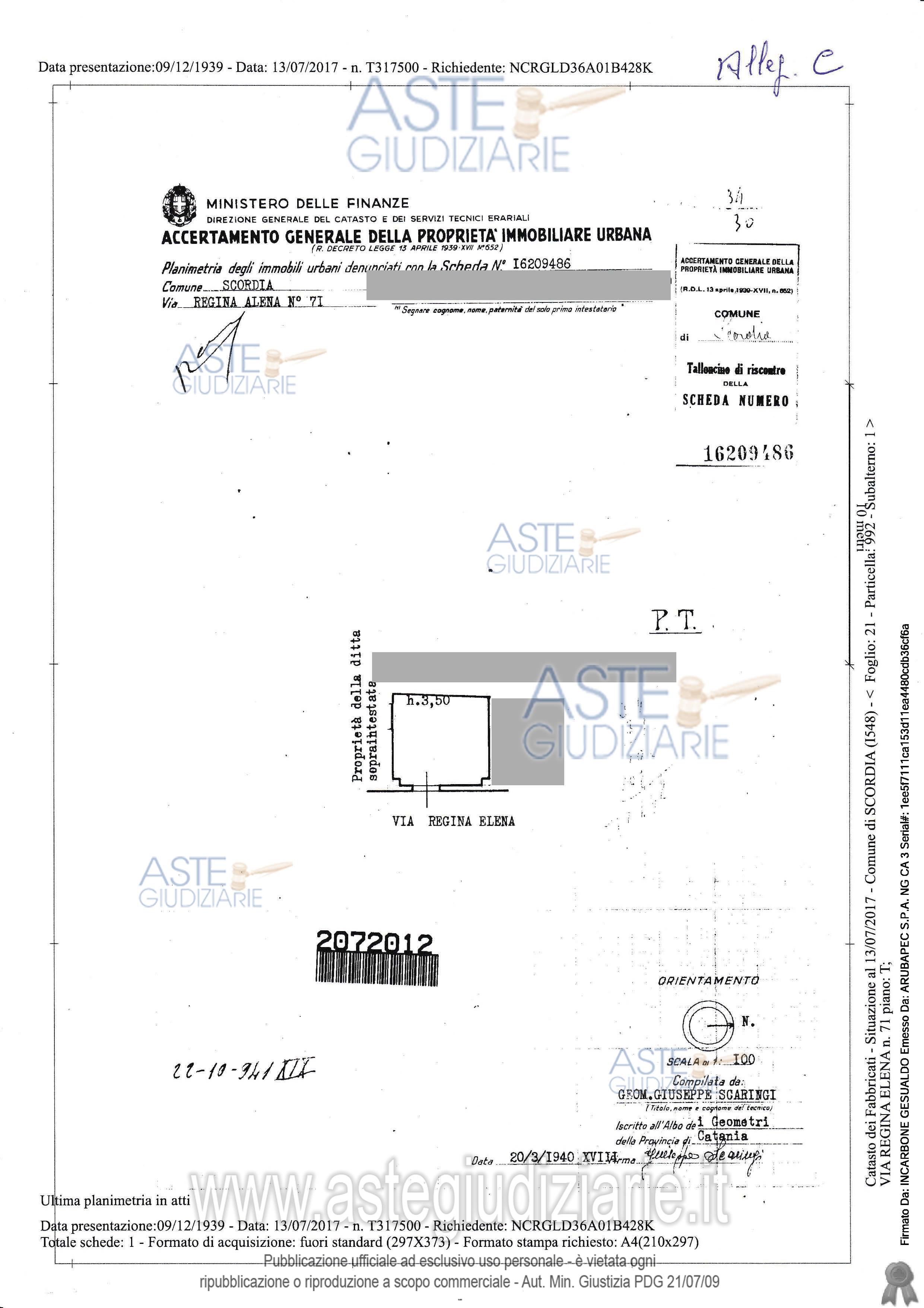 Vendita in attesa dell'emissione del nuovo bando d'asta. LOTTO 2: Vano garage in Scordia Via Regina Elena 71, particella 992 sub 1 (piano terra)categ. C/6 cl. 3 di mq. 11 e con la rendita catastale di Euro 31,81;. Ultimo prezzo base € 5.484,38 (offerta minima € 4.113,29). Professionista delegato alla vendita Avv. Daniele Sennato - Email "avv.danielesennato@gmail.com"; Cell. 3289654240; Tel. 093356185. Custode Giudiziario Avv. Daniele Sennato - Email "avv.danielesennato@gmail.com"; Cell. 3289654240; Tel. 093356185. Rif. Tribunale di Caltagirone - Esecuzione immobiliare post legge 80 n. 6/2016