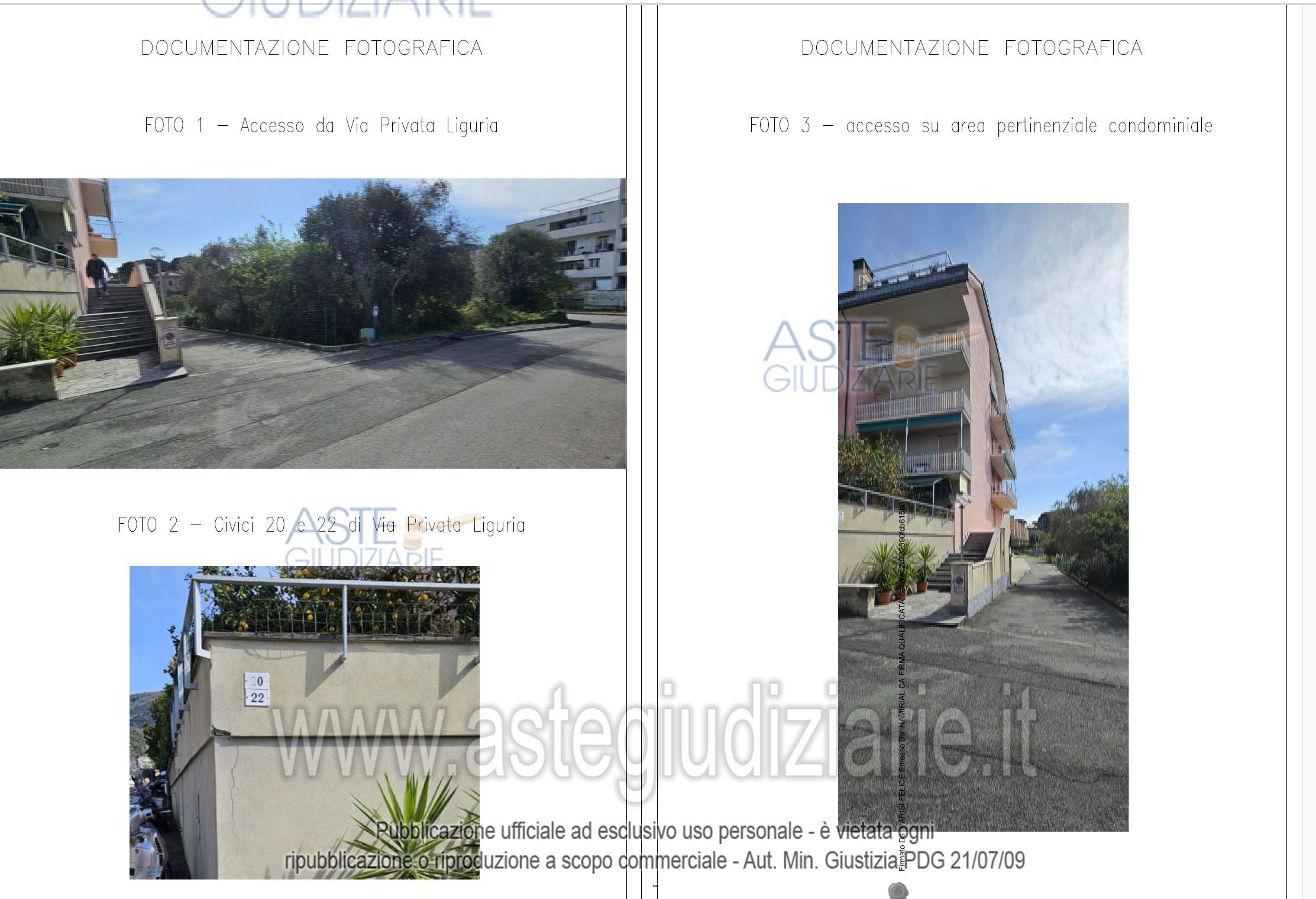 Vendita all'asta Senza incanto, con gara telematica sincrona mista - LOTTO UNICO: PIENA PROPRIETA' posto auto scoperto sito in Comune di Sestri Levante (GE), Via Privata Liguria (vicinanze civici 20 e 22), piano terra, 17 mq lordi. Prezzo base € 15.000,00 (offerta minima € 11.250,00). Data vendita 20/04/2026 ore 12:00. Giudice Pietro Spera. Professionista delegato alla vendita Avv. Lorenza Olmi - Cell. 3478212074. Custode Giudiziario So.Ve.Mo. (Societa' Vendite Mobiliari) - S.R.L. Rif. Tribunale di Genova - Espropriazione immobiliare (cartabia) n. 571/2024