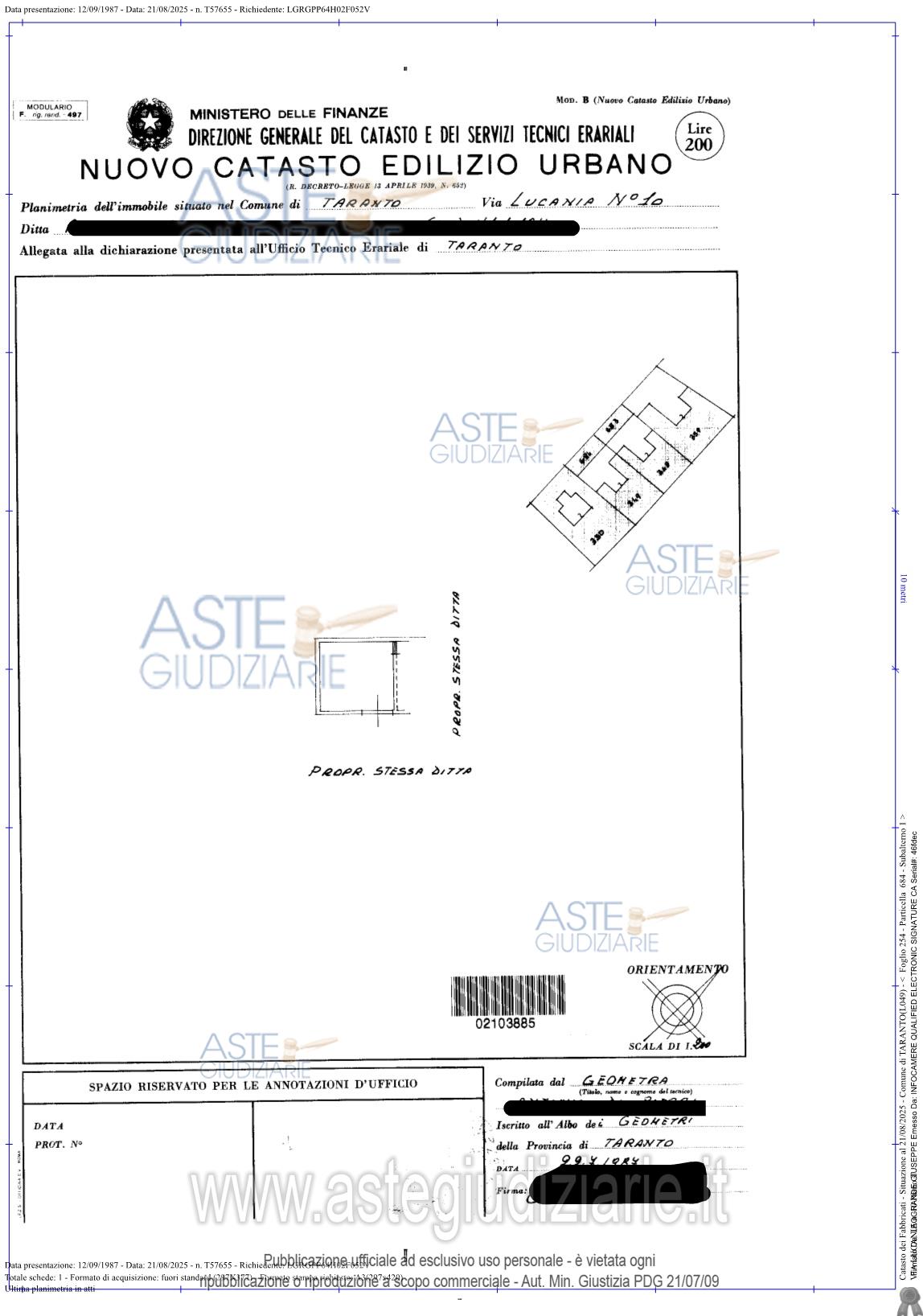 Rif. Tribunale di Taranto - Espropriazione immobiliare (cartabia) n. 155/2025