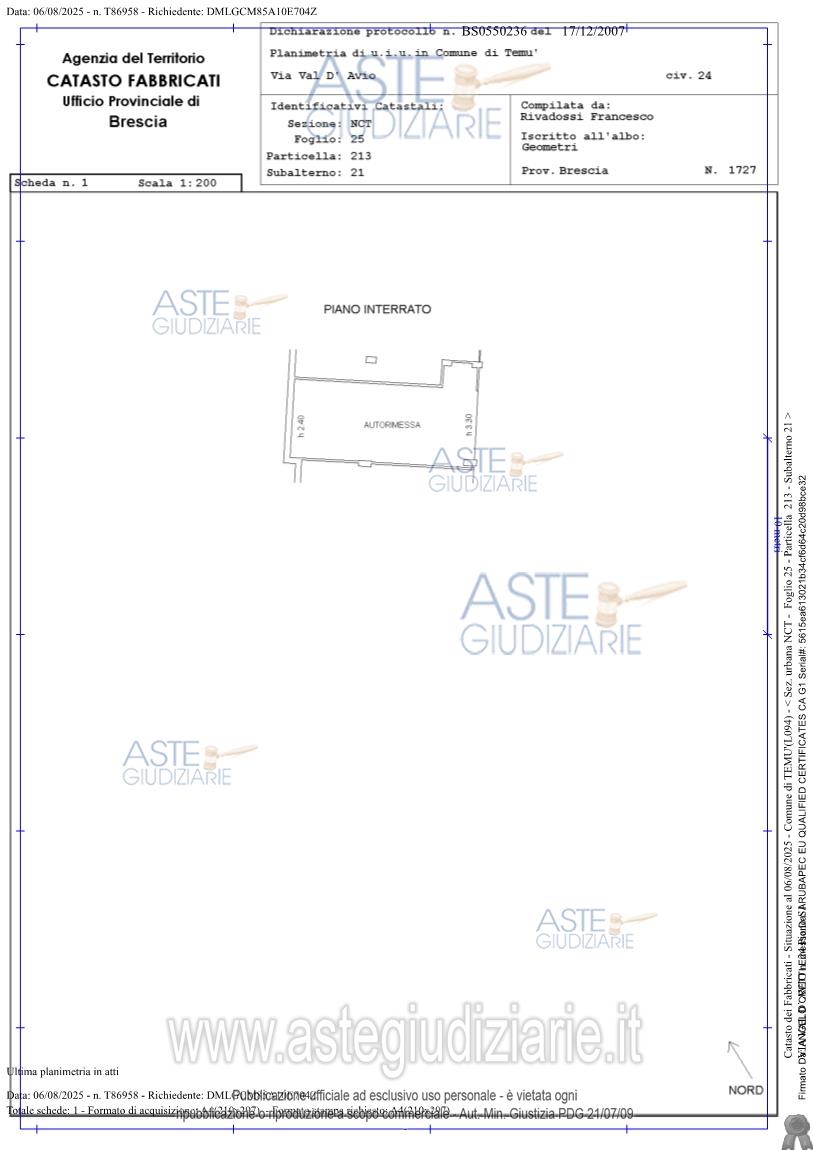 Vendita all'asta Senza incanto, con gara telematica asincrona - LOTTO 3: Piena proprietà di autorimessa di ca mq 41,00 al piano seminterrato di un complesso immobiliare residenziale e condominiale denominato "Chalet La Segheria". Occupato. Prezzo base € 39.000,00 (offerta minima € 35.000,00). Data inizio operazioni di vendita: 21/05/2026 ore 12:00. Professionista delegato alla vendita Avv. Maurizio Zanelli - Email "zanellieassociati@gmail.com"; Tel. 03042209. Custode Giudiziario Avv. Maurizio Zanelli - Email "zanellieassociati@gmail.com"; Tel. 03042209. Rif. Tribunale di Brescia - Espropriazione immobiliare (cartabia) n. 469/2024