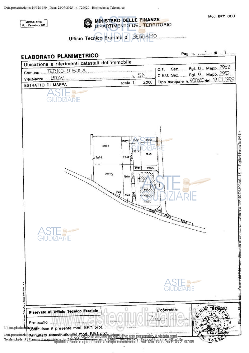 Vendita all'asta Senza incanto, con gara telematica asincrona - LOTTO 2: Box ad uso autorimessa in Comune di Terno d’Isola (BG), Via Bravi s.n.c. posto al piano interrato di un fabbricato a destinazione residenziale costituito da quattro piani fuori terra e da un piano interrato comune adibito ad autorimesse. Prezzo base € 9.000,00 (offerta minima € 6.750,00). Data inizio operazioni di vendita: 26/05/2026 ore 10:00. Giudice Maria Magrì. Professionista delegato alla vendita Rag. Nicola Trussardi - Email "info@studiotrussardi.it"; Cell. 3332350179. Custode Giudiziario Rag. Nicola Trussardi - Email "info@studiotrussardi.it"; Cell. 3332350179. Rif. Tribunale di Bergamo - Espropriazione immobiliare (cartabia) n. 261/2025