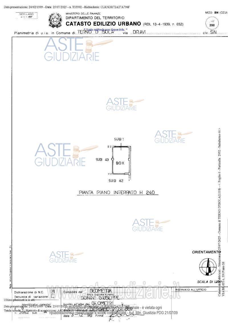 Vendita all'asta Senza incanto, con gara telematica asincrona - LOTTO 5: Box ad uso autorimessa in Comune di Terno d’Isola (BG), Via Bravi s.n.c. posto al piano interrato di un fabbricato a destinazione residenziale costituito da quattro piani fuori terra e da un piano interrato comune adibito ad autorimesse. Prezzo base € 9.000,00 (offerta minima € 6.750,00). Data inizio operazioni di vendita: 26/05/2026 ore 11:20. Giudice Maria Magrì. Professionista delegato alla vendita Rag. Nicola Trussardi - Email "info@studiotrussardi.it"; Cell. 3332350179. Custode Giudiziario Rag. Nicola Trussardi - Email "info@studiotrussardi.it"; Cell. 3332350179. Rif. Tribunale di Bergamo - Espropriazione immobiliare (cartabia) n. 261/2025