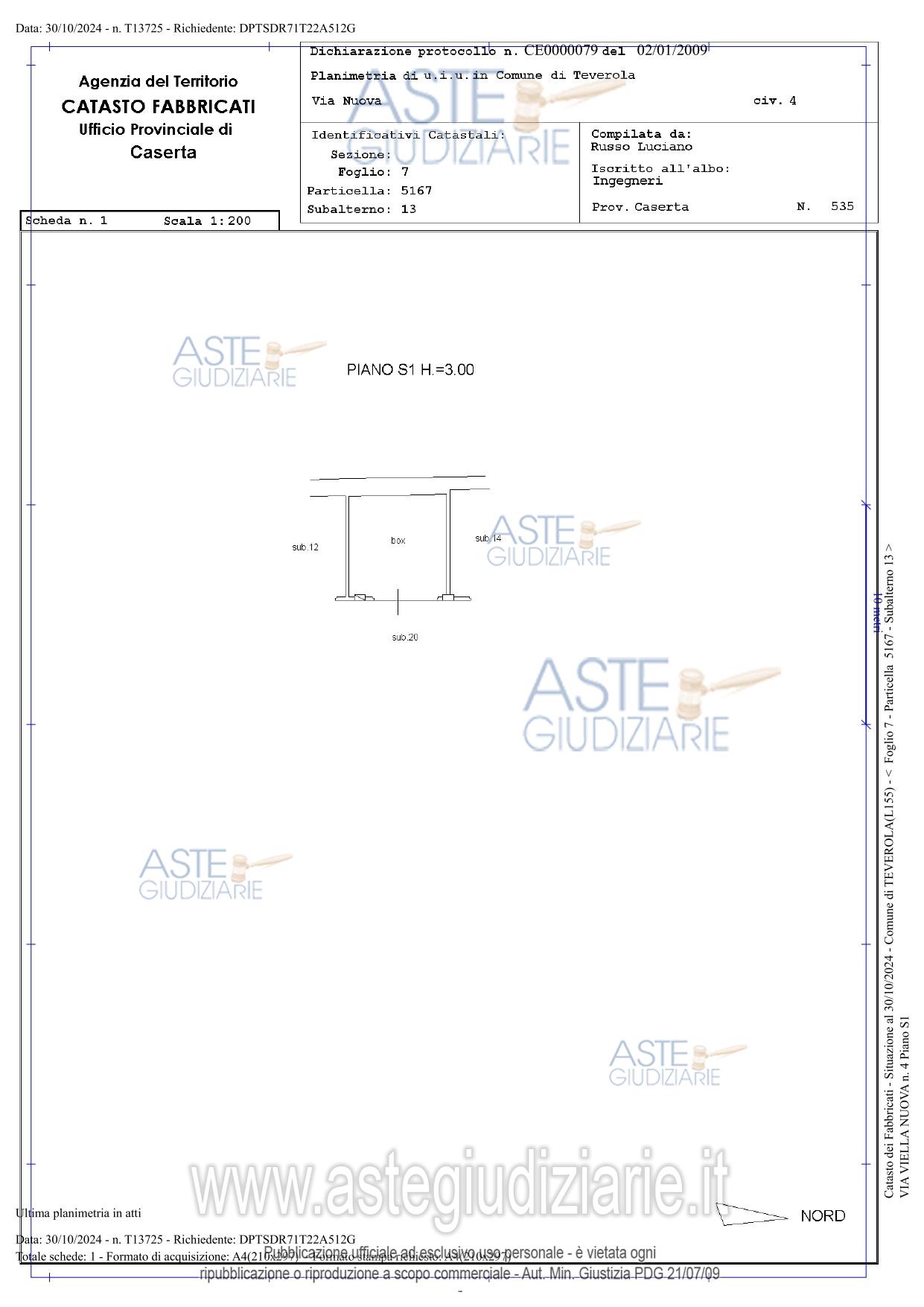 Vendita all'asta Senza incanto, con gara telematica asincrona - LOTTO 2: LOTTO DUE: Piena ed intera proprietà di box auto sito in Teverola (CE) alla Via Viella Nuova n.3, piano cantinato; confina con box auto sub 12, box auto sub 14 e con corsia di manovra sub 20 ed è riportato nel N.C.E.U. del Comune di Teverola al foglio 7, p.lla 5167, sub 13, Cat. C/6, classe 2, cons. 21 mq, sup. cat. totale 24 mq, R.C. € 55,31. Prezzo base € 14.000,00 (offerta minima € 10.500,00). Data inizio operazioni di vendita: 18/12/2025 ore 15:30. Giudice Lorella Triglione. Professionista delegato alla vendita Avv. Marcello De Giorgio - Email "avvmarcellodegiorgio@libero.it"; Cell. 3358360365; Tel. 0815801274. Custode Giudiziario Avv. Marcello De Giorgio - Email "avvmarcellodegiorgio@libero.it"; Cell. 3358360365; Tel. 0815801274. Rif. Tribunale di Napoli Nord - Espropriazione immobiliare (cartabia) n. 407/2023