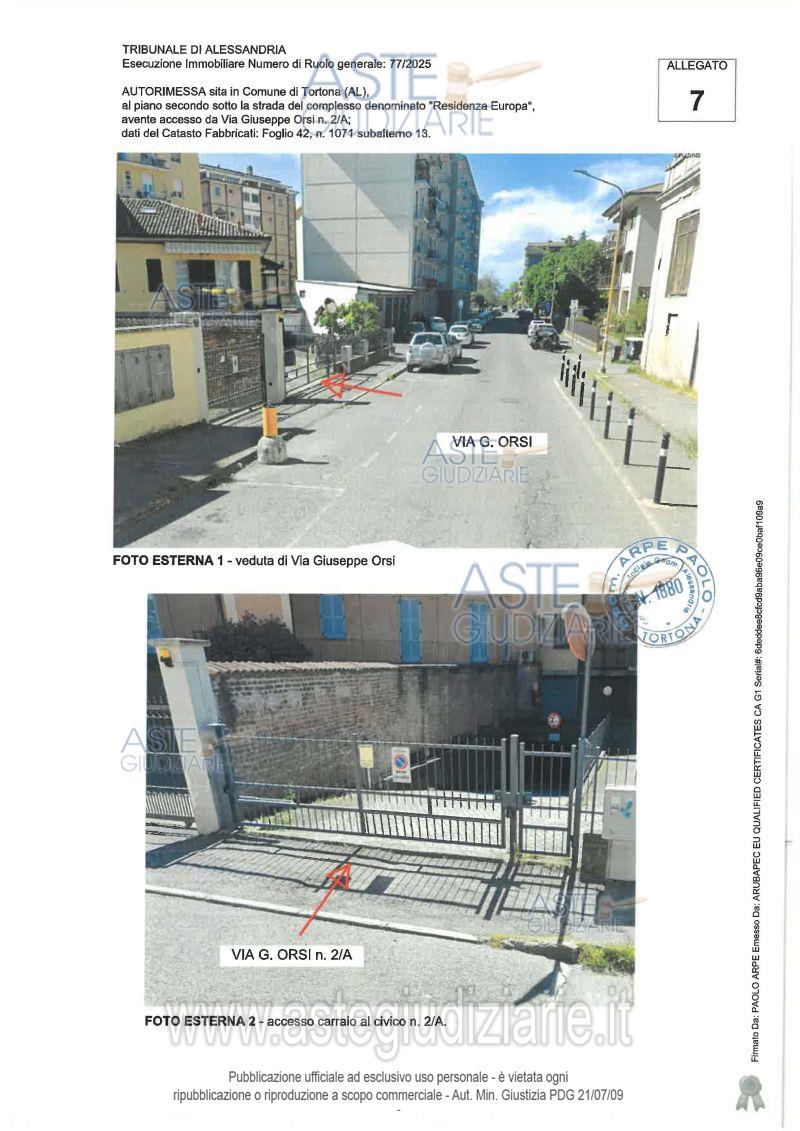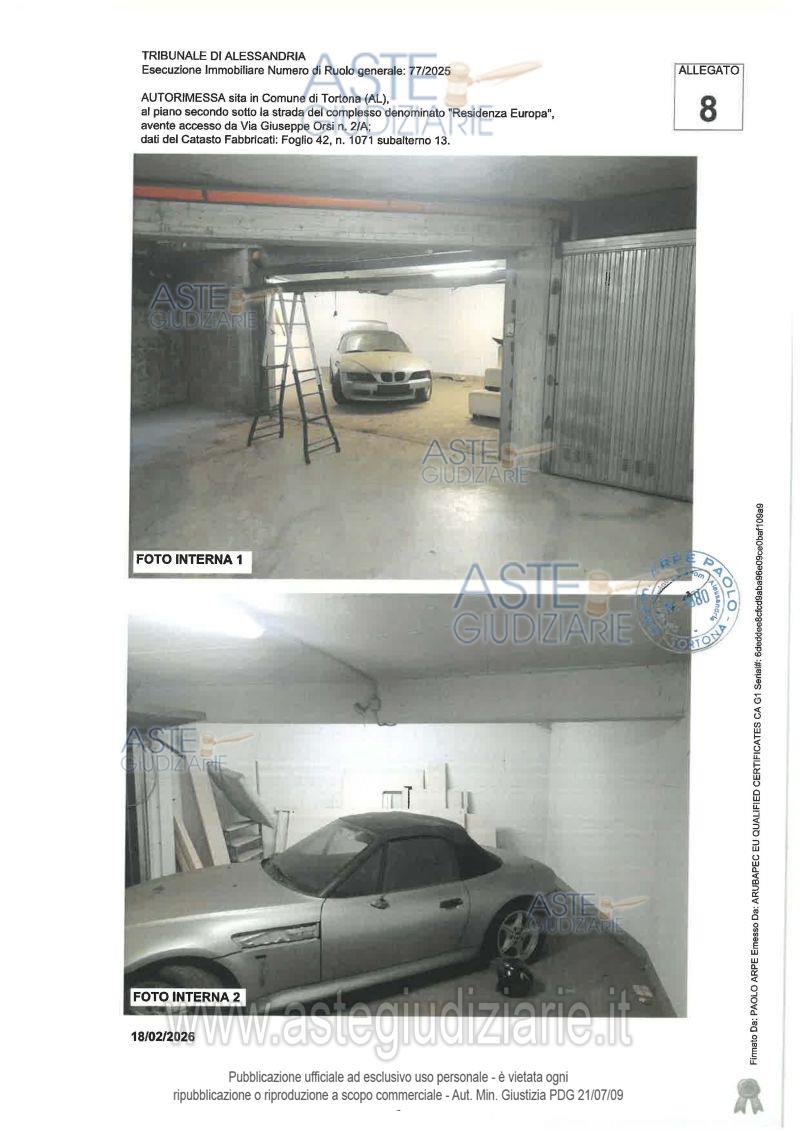 Vendita all'asta Senza incanto - LOTTO UNICO: autorimessa al piano secondo sotto la strada in complesso condominiale. Prezzo base € 25.000,00 (offerta minima € 18.750,00). Data vendita 09/07/2026 ore 17:00. Professionista delegato alla vendita Avv. Avv. Maria Grazia Barberis - Email "info@avvocatiferrari.com"; Tel. 0131251686. Custode Giudiziario Avv. Avv. Maria Grazia Barberis - Email "info@avvocatiferrari.com"; Tel. 0131251686. Rif. Tribunale di Alessandria - Esecuzione immobiliare post legge 80 n. 77/2025