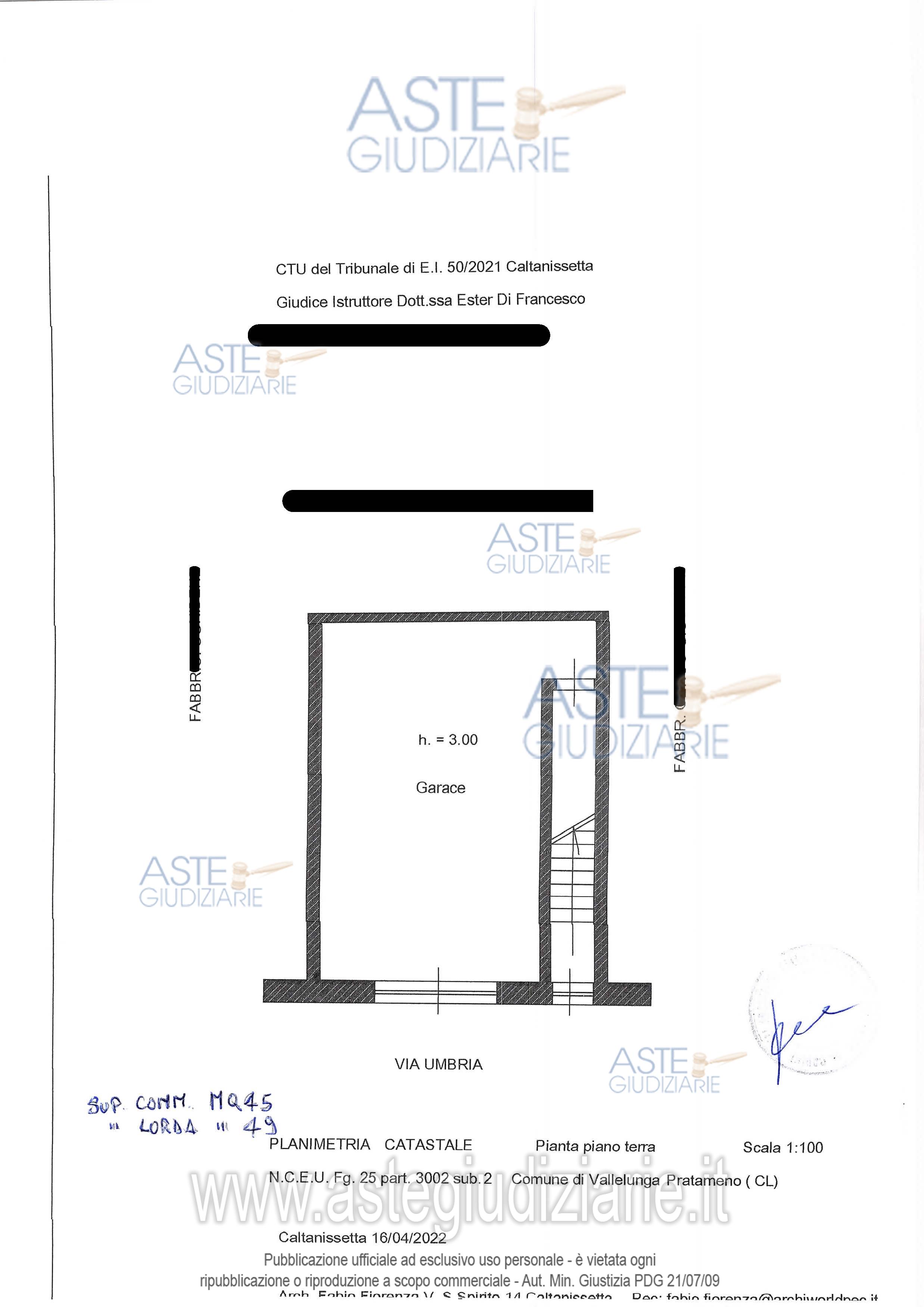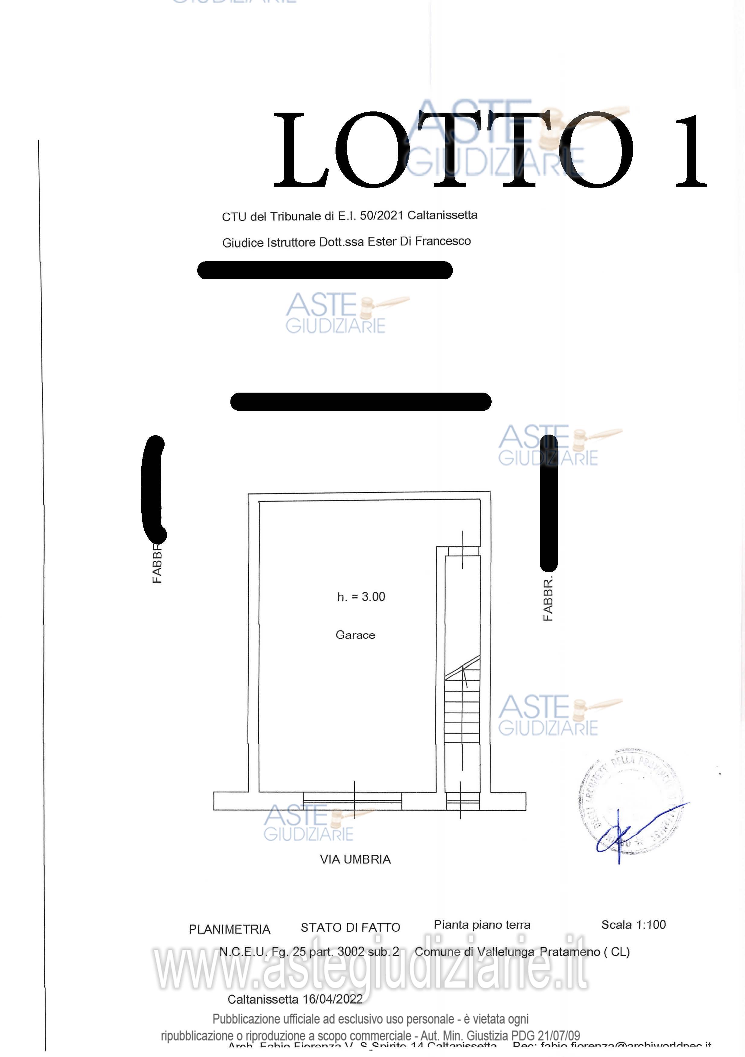 Vendita in attesa dell'emissione del nuovo bando d'asta. LOTTO 1: LOTTO UNO - Piena proprietà di un garage di mq. 45 al piano terra che fa parte di un fabbricato di 4 livelli. Ultimo prezzo base € 5.988,94 (offerta minima € 4.491,70). Giudice Ester Rita Difrancesco. Professionista delegato alla vendita Dott. Michele Savoja. Custode Giudiziario Dott. Michele Savoja - Email "michele.savoja@alice.it"; Tel. 0934591010. Rif. Tribunale di Caltanissetta - Esecuzione immobiliare post legge 80 n. 50/2021
