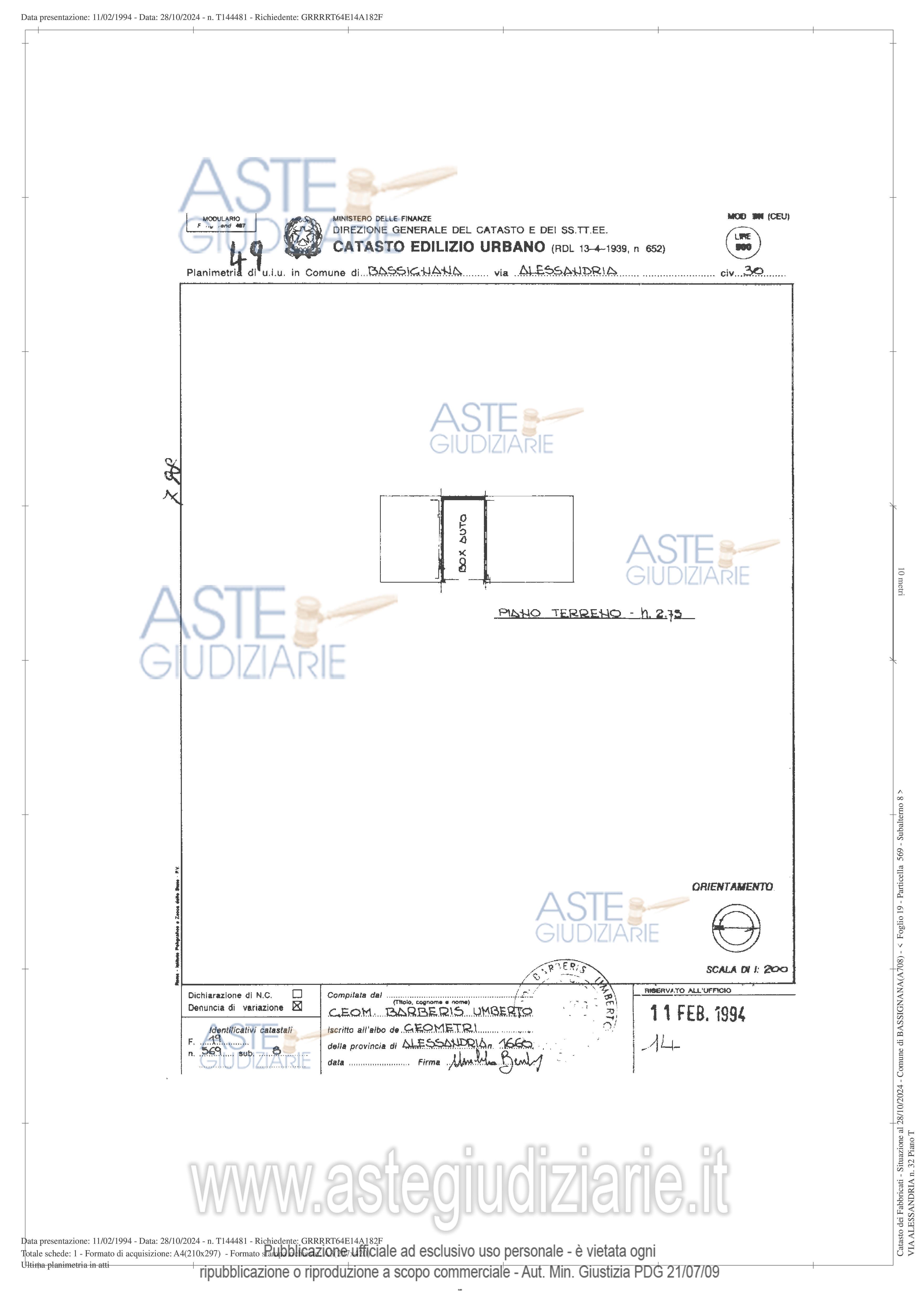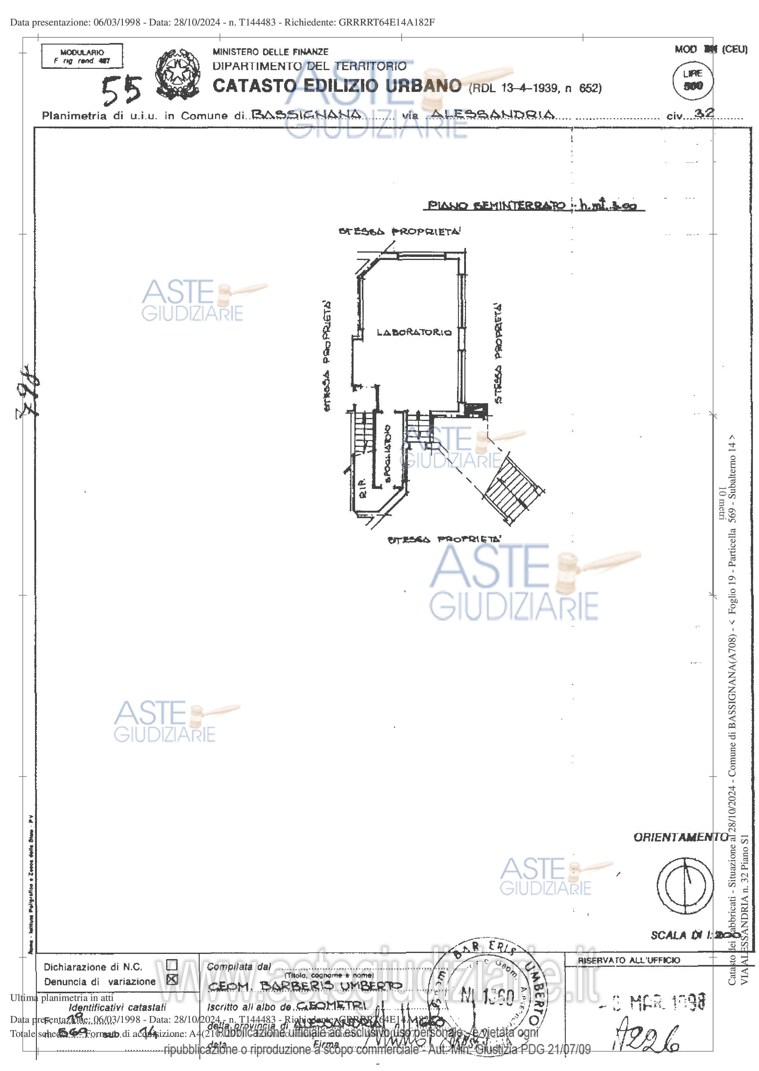 Vendita all'asta Senza incanto, con gara telematica asincrona - LOTTO 002: Piena proprietà di laboratorio di ca 69 mq. sito al piano seminterrato a cui si accede dalla scala comune della palazzina interna oppure direttamente dal piano cortile; completamente autosufficiente con servizi igienici ed impianto di riscaldamento autonomo. Occupato dal debitore e dai suoi famigliari. Prezzo base € 16.400,00 (offerta minima € 12.300,00). Data inizio operazioni di vendita: 13/05/2026 ore 15:00. Giudice Dott. Roberta Brera. Professionista delegato alla vendita Avv. Elisa Carrea - Email "eli.carrea@gmail.com"; Cell. 3493623954; Tel. 3493623954. Custode Giudiziario Avv. Elisa Carrea - Email "eli.carrea@gmail.com"; Cell. 3493623954; Tel. 3493623954. Rif. Tribunale di Alessandria - Espropriazione immobiliare (cartabia) n. 242/2024