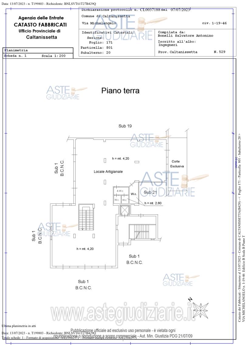 Vendita all'asta Senza incanto, con gara telematica sincrona mista - LOTTO 1: Proprietà superficiaria di locale artigianale sito a Caltanissetta in via Michelangelo senza numero civico (quartiere S. Luca), consistente in:- Unità immobiliare a piano terra- Unità immobiliare a piano seminterrato. Prezzo base € 151.048,68 (offerta minima € 113.286,51). Data vendita 15/04/2026 ore 11:00. Giudice Dott. Francesco Lauricella. Professionista delegato alla vendita Avv. Carla Emma - Email "carlaemma@tiscali.it". Custode Giudiziario Avv. Carla Emma - Email "carlaemma@tiscali.it". Rif. Tribunale di Caltanissetta - Esecuzione immobiliare post legge 80 n. 57/2021