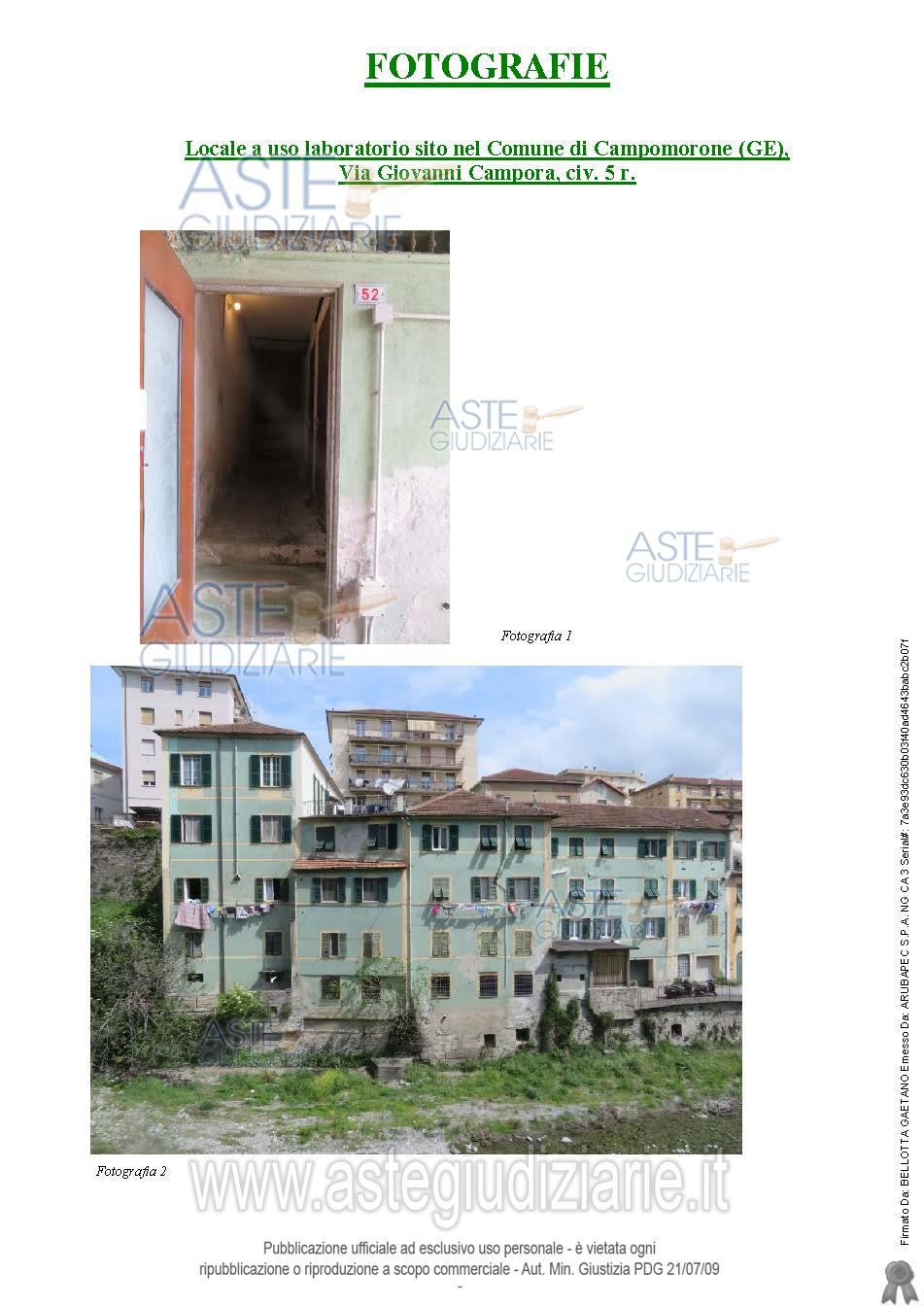 Vendita all'asta Senza incanto, con gara telematica sincrona mista - LOTTO UNICO: LOTTO UNICO: Piena proprietà dell’immobile, sito in Campomorone (GE), Via Giovanni Campora, civ. 52 r. L’immobile è composto da: corridoio collegato con scala condominiale, da cui si accede ad un 1° ampio vano ad uso laboratorio con sottoscala, nonché ad un secondo vano ad uso magazzino. Alcuni scalini conducono ad un altro ampio vano a destinazione magazzino con tre arcate centrali. L’unità immobiliare sviluppa complessivamente una superficie lorda pari a circa 237,00 mq. Prezzo base € 17.244,14 (offerta minima € 12.933,11). Data vendita 04/12/2025 ore 15:30. Professionista delegato alla vendita Dott. Daniele Lippi - Email "d.lippi@m7associati.com"; Tel. 010588182. Custode Giudiziario Sovemo - Email "visitegenova@sovemo.com"; Tel. 0105299253. Rif. Tribunale di Genova - Esecuzione immobiliare post legge 80 n. 43/2023