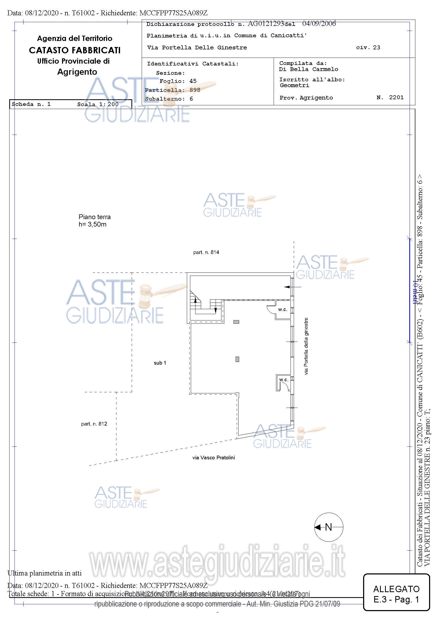 Vendita all'asta Senza incanto, con gara telematica sincrona mista - LOTTO 2: -Fabbricato sito in Comune di Canicattì (AG), VIA PORTELLA DELLE GINESTRE n. 19 e 21, piano Terra, censito al foglio 45, particella 898 sub. 6, cat. C/3, rendita € 609,83. Prezzo base € 15.432,00 (offerta minima € 11.574,00). Data vendita 01/07/2026 ore 10:00. Professionista delegato alla vendita Avv. Giuseppina Insalaco - Email "avv.giusyinsalaco@virgilio.it"; Cell. 3804153606; Tel. 3804153606. Custode Giudiziario Avv. Giuseppina Insalaco - Email "avv.giusyinsalaco@virgilio.it"; Cell. 3804153606; Tel. 3804153606. Rif. Tribunale di Agrigento - Esecuzione immobiliare post legge 80 n. 143/2018