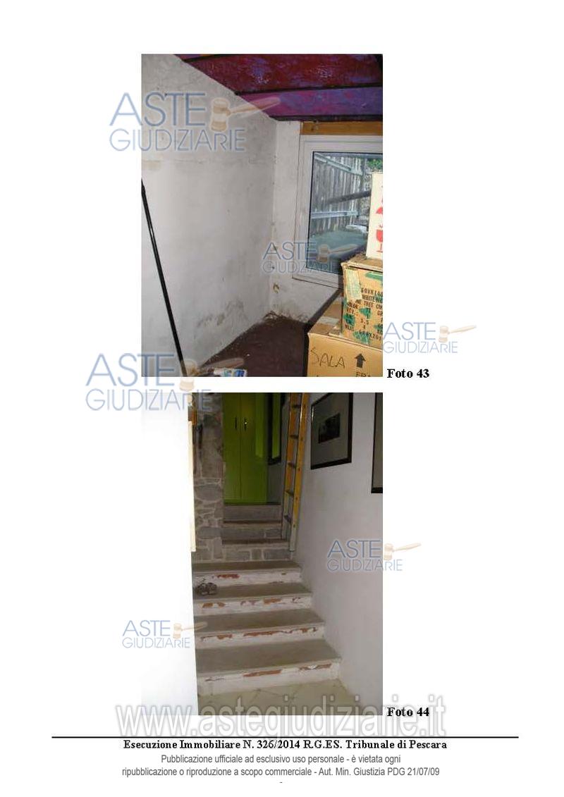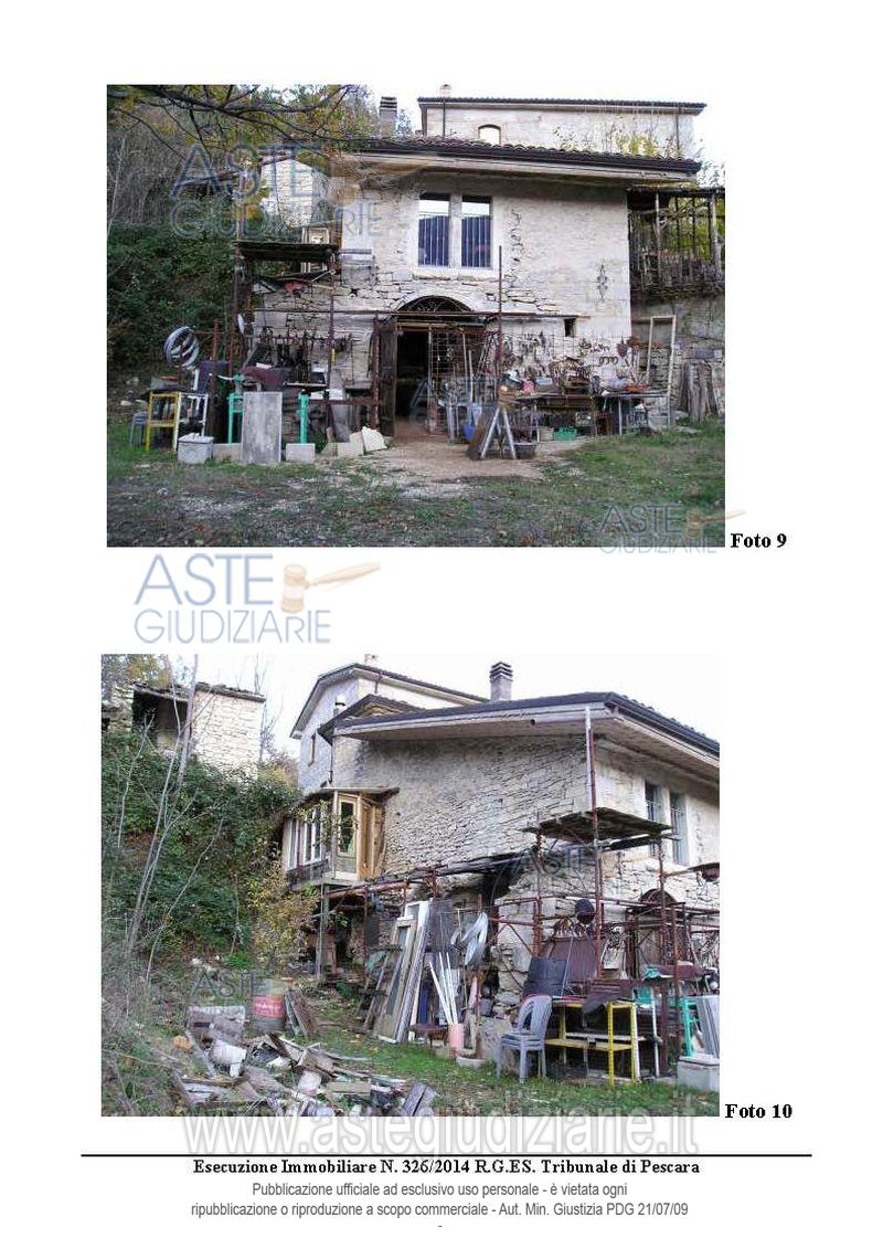Vendita all'asta Senza incanto, con gara telematica asincrona - LOTTO UNICO: Diritti di piena proprietà su abitazione costituita da piano seminterrato, piano terra e piano primo, con diritto alla corte comune individuata dal Foglio 13 particella 187. Gli immobili sono accessibili dalla strada pubblica (strada Regionale 487) attraverso una stradina insistente sul terreno individuato dal Foglio 13 particella 382, di proprietà dell'esecutato per la quota di 4/12;. Prezzo base € 303.138,00 (offerta minima € 227.352,97). Data inizio operazioni di vendita: 03/03/2026 ore 15:00. Professionista delegato alla vendita Not. Simona Camilli. Custode Giudiziario Not. Simona Camilli - Email "scamilli@notariato.it". Rif. Tribunale di Pescara - Esecuzione immobiliare post legge 80 n. 326/2014