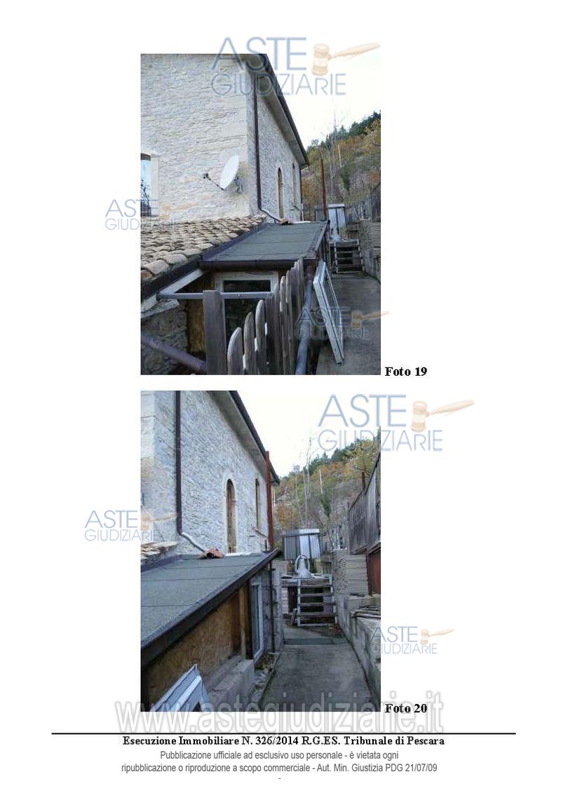 Vendita all'asta Senza incanto, con gara telematica asincrona - LOTTO UNICO: Diritti di piena proprietà su abitazione costituita da piano seminterrato, piano terra e piano primo, con diritto alla corte comune individuata dal Foglio 13 particella 187. Gli immobili sono accessibili dalla strada pubblica (strada Regionale 487) attraverso una stradina insistente sul terreno individuato dal Foglio 13 particella 382, di proprietà dell'esecutato per la quota di 4/12;. Prezzo base € 227.352,97 (offerta minima € 170.514,73). Data inizio operazioni di vendita: 19/05/2026 ore 15:00. Professionista delegato alla vendita Not. Simona Camilli. Custode Giudiziario Not. Simona Camilli - Email "scamilli@notariato.it". Rif. Tribunale di Pescara - Esecuzione immobiliare post legge 80 n. 326/2014