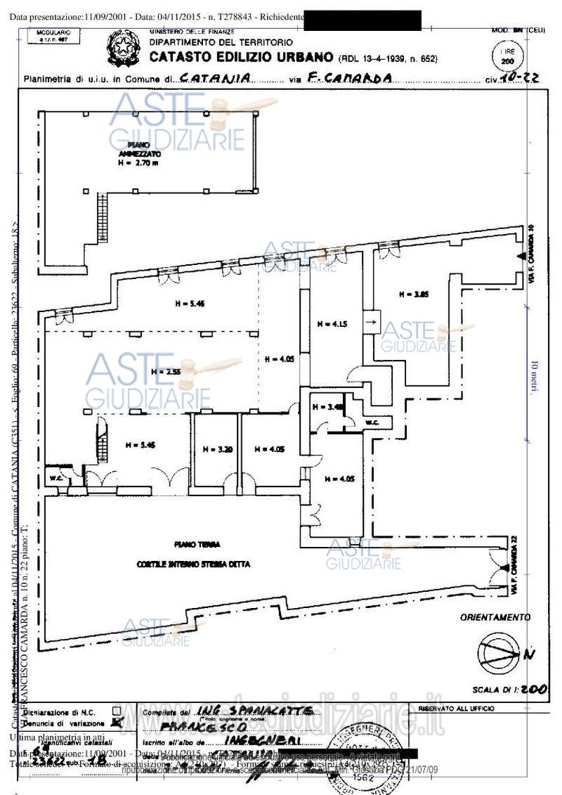Vendita all'asta Senza incanto - LOTTO UNICO: Laboratorio artigianale sito in Catania, Via Camarda n. 10-22, posto al piano terra, avente una superficie commerciale di mq. 530 c.ca; identificato al Catasto Fabbricati del detto Comune al Foglio 69, Particella 23622, Sub. 18, Categ. C/3, Classe 5, consistenza mq. 530, superficie catastale mq. 675, rendita catastale € 4.324,81. Prezzo base € 189.844,00 (offerta minima € 142.383,00). Data vendita 10/06/2026 ore 16:00. Professionista delegato alla vendita Avv. Daniela Marletta - Email "visite@aavg.it"; Tel. 0952163386. Custode Giudiziario Avv. Daniela Marletta - Email "visite@aavg.it"; Tel. 0952163386. Rif. Tribunale di Catania - Esecuzione immobiliare post legge 80 n. 1006/2013