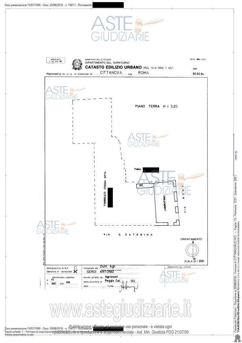 Vendita all'asta Senza incanto, con gara telematica asincrona - LOTTO 3: Diritto di piena proprietà dell’intero di un laboratorio al piano terra, della superficie commerciale di circa 69,00 mq,. Prezzo base € 8.301,60 (offerta minima € 6.226,20). Data inizio operazioni di vendita: 08/04/2026 ore 15:15. Giudice Dott. Marta Caineri. Professionista delegato alla vendita Avv. Antonella Anastasi - Email "antoanastasi@libero.it"; Tel. 3471843361. Custode Giudiziario Avv. Antonella Anastasi - Email "antoanastasi@libero.it"; Tel. 3471843361. Rif. Tribunale di Palmi - Esecuzione immobiliare post legge 80 n. 24/2018