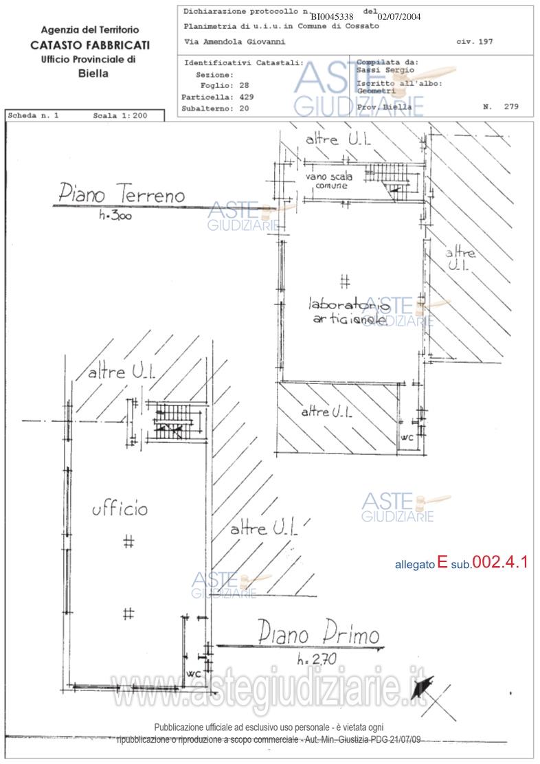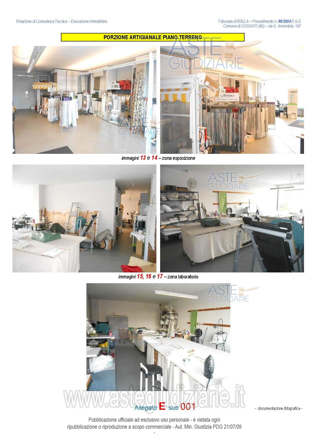 Vendita all'asta Senza incanto, con gara telematica asincrona - LOTTO UNICO: -al piano terreno (1° f.t.): laboratorio artigianale con esposizione e angolo ufficio, anti wc e wc.; -al piano primo (2° f.t.): due uffici (ampio locale open-space e altro spazioso vano) anti wc e wc; -al piano terreno (1° f.t.): due locali comunicanti fra di loro costituenti un vano destinato ad autorimessa/deposito. Prezzo base € 89.500,00 (offerta minima € 67.125,00). Data inizio operazioni di vendita: 05/05/2026 ore 15:00. Professionista delegato alla vendita Dott. Alessandro Maria De Palma - Email "vendite@bcmz.it"; Tel. 0158853156. Custode Giudiziario Dott. Alessandro Maria De Palma - Email "vendite@bcmz.it"; Tel. 0158853156. Rif. Tribunale di Biella - Espropriazione immobiliare (cartabia) n. 96/2024