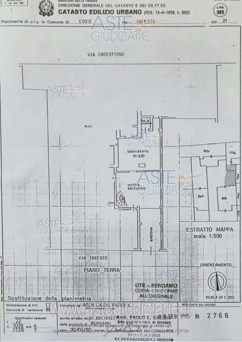 Vendita all'asta Senza incanto, con gara telematica asincrona - LOTTO 4: Unità immobiliare uso laboratorio al piano terra dell’edificato storico accessibile da Via Trieste 20 tramite androne e cortile esclusivo, attualmente coperto, costituiscono l’unica via di accesso per altre unità poste in adiacenza e ai piani superiori; all'interno è situato un “locale motore” ove sono collocati l’impianto della fognatura, gli impianti idrici ed elettrici a servizio anche delle altre porzioni immobiliari, creando una servitù necessaria per le eventuali manutenzioni. Occupato. Prezzo base € 18.487,50 (offerta minima € 13.865,62). Data inizio operazioni di vendita: 26/05/2026 ore 10:00. Giudice Luca Verzeni. Professionista delegato alla vendita Dott. Angelo Galizzi - Email "studiogalizzi@studiocgls.com"; Tel. 0350073211. Custode Giudiziario Dott. Mauro Freti - Email "mauro.freti@studiofretieassociati.it"; Tel. 035216044. Rif. Tribunale di Bergamo - Esecuzione immobiliare post legge 80 n. 524/2021