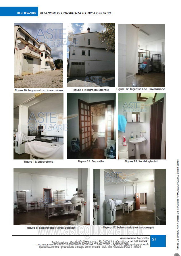 Vendita all'asta Senza incanto, con gara telematica asincrona - LOTTO 1: Locale adibito a laboratorio per arti e mestieri, composto da due aree:•zona produzione con depositi materie prime;•zona ufficio, spogliatoio e garage. •Buono stato manutentivo, nessuna criticità strutturale o impiantistica rilevata. Prezzo base € 63.000,00 (offerta minima € 47.250,00). Data inizio operazioni di vendita: 21/04/2026 ore 17:00. Giudice Aniello Maria De Piano. Professionista delegato alla vendita Avv. Italo Grillo - Email "avvitalogrillo@gmail.com"; Cell. 3386395723; Tel. 3386395723. Custode Giudiziario Avv. Italo Grillo - Email "avvitalogrillo@gmail.com"; Cell. 3386395723; Tel. 3386395723. Rif. Tribunale di Lagonegro - Esecuzione immobiliare post legge 80 n. 62/2008