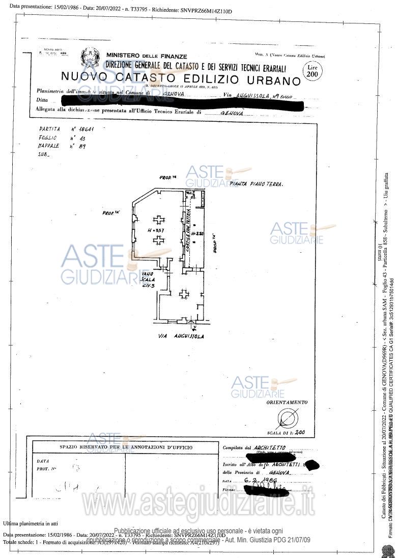 Vendita all'asta Senza incanto, con gara telematica sincrona mista - LOTTO 2: Piena proprietà del laboratorio ubicato a Genova, Via Sofonisba Anguissola 9r, piano t; l’accesso attraverso una porta è diretto dalla strada, senza sbocco, a cui si accede da via W. Fillak. Il laboratorio, luminoso e di forma abbastanza regolare, ha varie finestre e porte finestre che permettono di accedere al cortile adiacente dotato di piccolo locale igienico e tettoia. Superficie convenzionale complessiva: mq. 176,92 mq. Prezzo base € 59.702,28 (offerta minima € 44.776,71). Data vendita 30/03/2026 ore 12:00. Professionista delegato alla vendita Avv. Alessandra Boccardo - Email "alessandra.boccardo@boccardoroveta.it"; Tel. 0108370146. Custode Giudiziario (Societa' Vendite Mobiliari) - S.R.L. So.Ve.Mo. - Email "visitegenova@sovemo.com"; Tel. 0105299253. Rif. Tribunale di Genova - Contenzioso civile n. 7635/2024