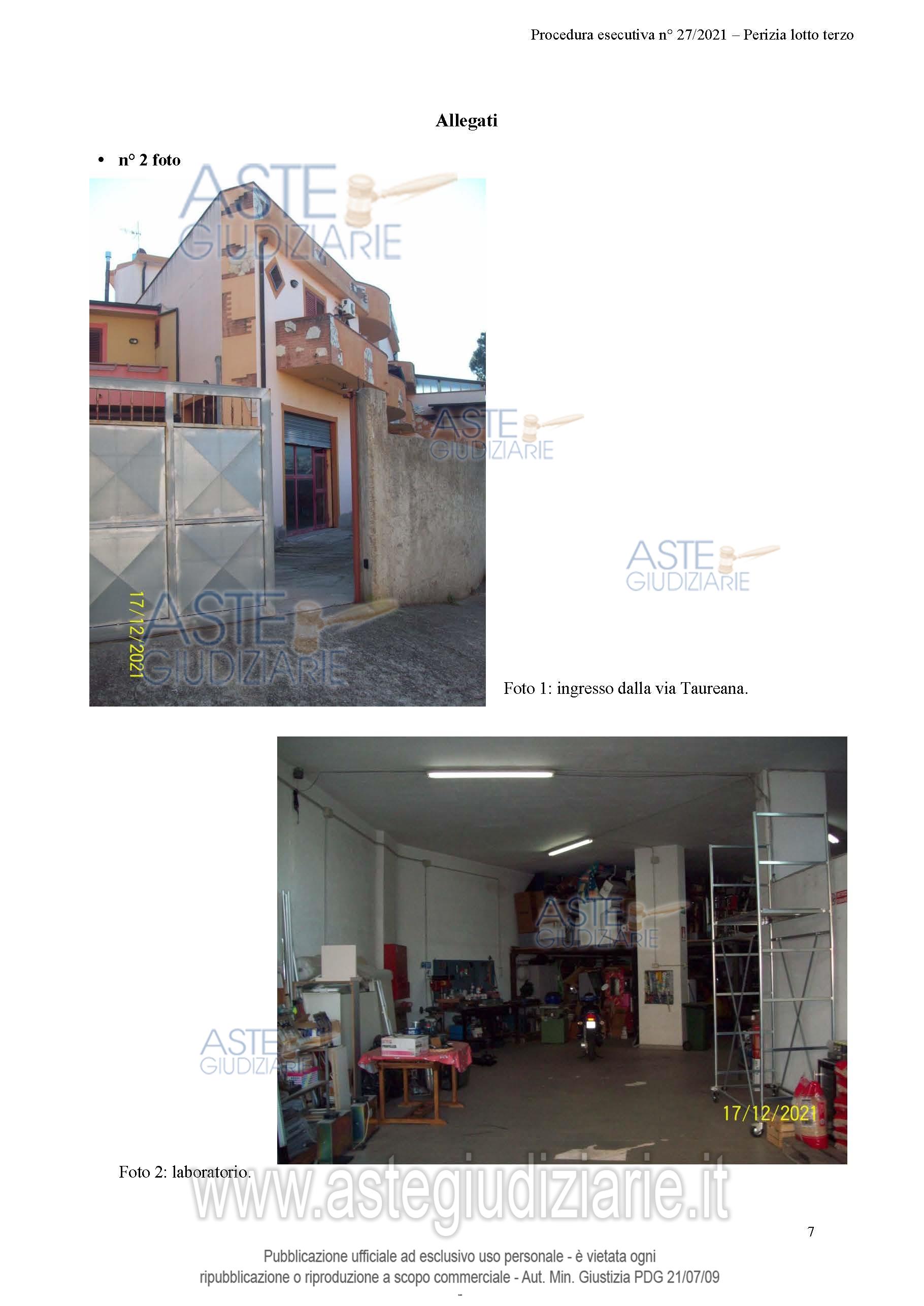 Vendita all'asta Senza incanto, con gara telematica asincrona - LOTTO 3: Laboratorio di arti e Mestieri di recente costruzione. Il laboratorio costituente il presente lotto di vendita è ubicato al PS1. Si articola su un unico piano ed è composto da un unico grande ambiente, in parte soppalcato, da ufficio, servizio igienico, mq 195,17; superficie utile laboratorio è mq 173,25. Immobile con vincolo paesaggistico. Cat. C/3, cl. 2, 165 mq, sup. cat. Totale 198 mq. Prezzo base € 13.307,55 (offerta minima € 9.980,66). Data inizio operazioni di vendita: 08/01/2026 ore 17:00. Giudice Dott. Marta Caineri. Professionista delegato alla vendita Dott. Angela Speranza - Email "dott_angelasperanza@libero.it"; Cell. 3395731808; Tel. 0966614976. Custode Giudiziario Dott. Angela Speranza - Email "dott_angelasperanza@libero.it"; Cell. 3395731808; Tel. 0966614976. Rif. Tribunale di Palmi - Esecuzione immobiliare post legge 80 n. 27/2021