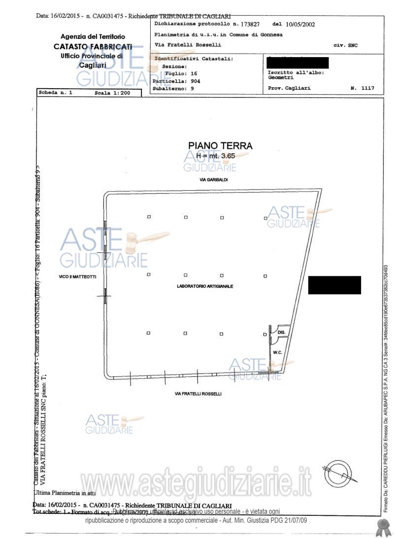 Custode Giudiziario: Ivg Cagliari - Email "ivg.visiteimmobili@tiscali.it"; Tel. 070/2299036.