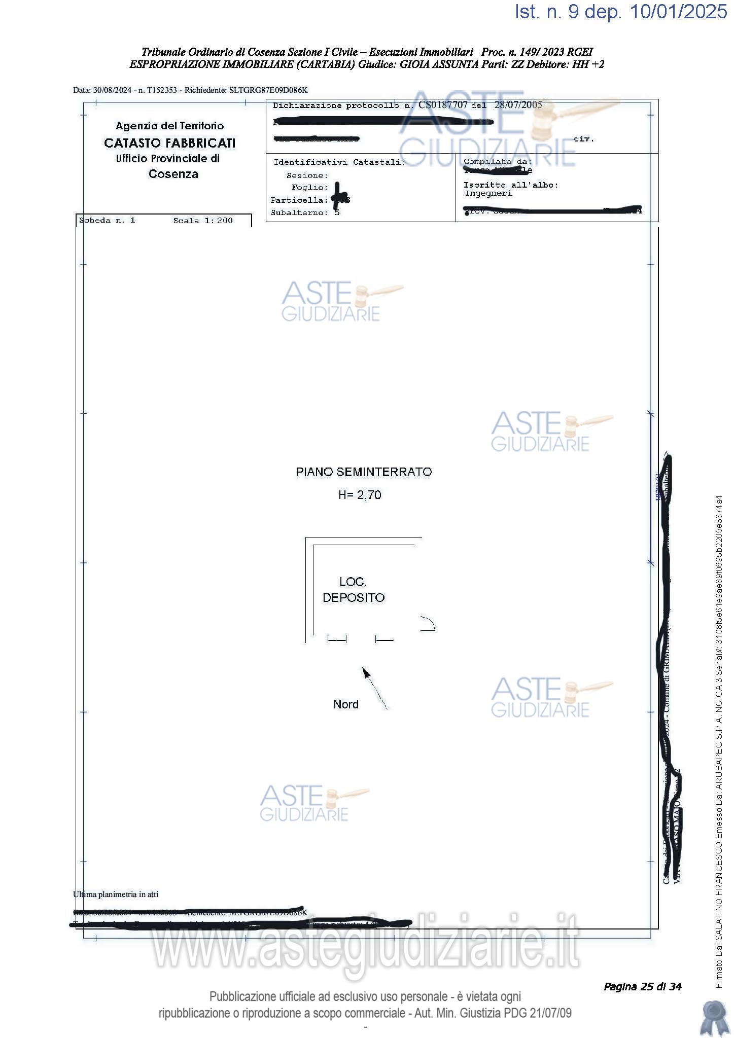 Vendita all'asta Senza incanto, con gara telematica sincrona mista - LOTTO 1: Immobili costituiti da due magazzini contigui al piano terra e sottostrada, oltre un'area scoperta con funzione di corte con accesso laterale dalla stessa via. Prezzo base € 88.464,00 (offerta minima € 66.348,00). Data vendita 09/04/2026 ore 16:15. Giudice Dott. Assunta Gioia. Professionista delegato alla vendita Not. Maria Gisonna - Email "associazionenotarileproenc@gmail.com"; Tel. 0984408479. Custode Giudiziario Not. Maria Gisonna - Email "associazionenotarileproenc@gmail.com"; Tel. 0984408479. Rif. Tribunale di Cosenza - Espropriazione immobiliare (cartabia) n. 149/2023