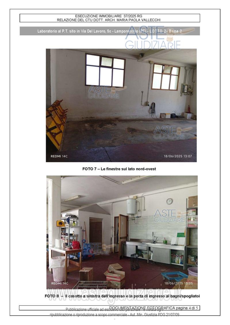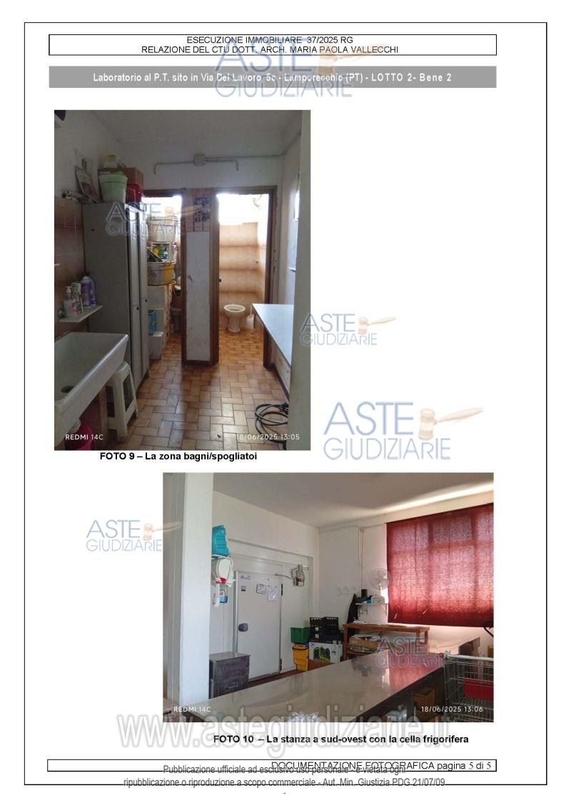 Vendita all'asta Senza incanto, con gara telematica asincrona - LOTTO 2: Diritti di piena proprietà su fondo ad uso laboratorio artigianale posto in Lamporecchio (PT),con accesso carrabile sul fronte nord-est dalla via del Lavoro tramite strada di proprietàcomune, e ingresso pedonale sul lato nord-ovest, dotato di servizi igienici e spogliatoio. Prezzo base € 77.600,00 (offerta minima € 58.500,00). Data inizio operazioni di vendita: 16/04/2026 ore 10:00. Giudice Sergio Garofalo. Professionista delegato alla vendita Avv. Diletta Elena Ghelardini. Custode Giudiziario Isveg - Email "prenota.pt@isveg.it". Rif. Tribunale di Pistoia - Espropriazione immobiliare (cartabia) n. 37/2025