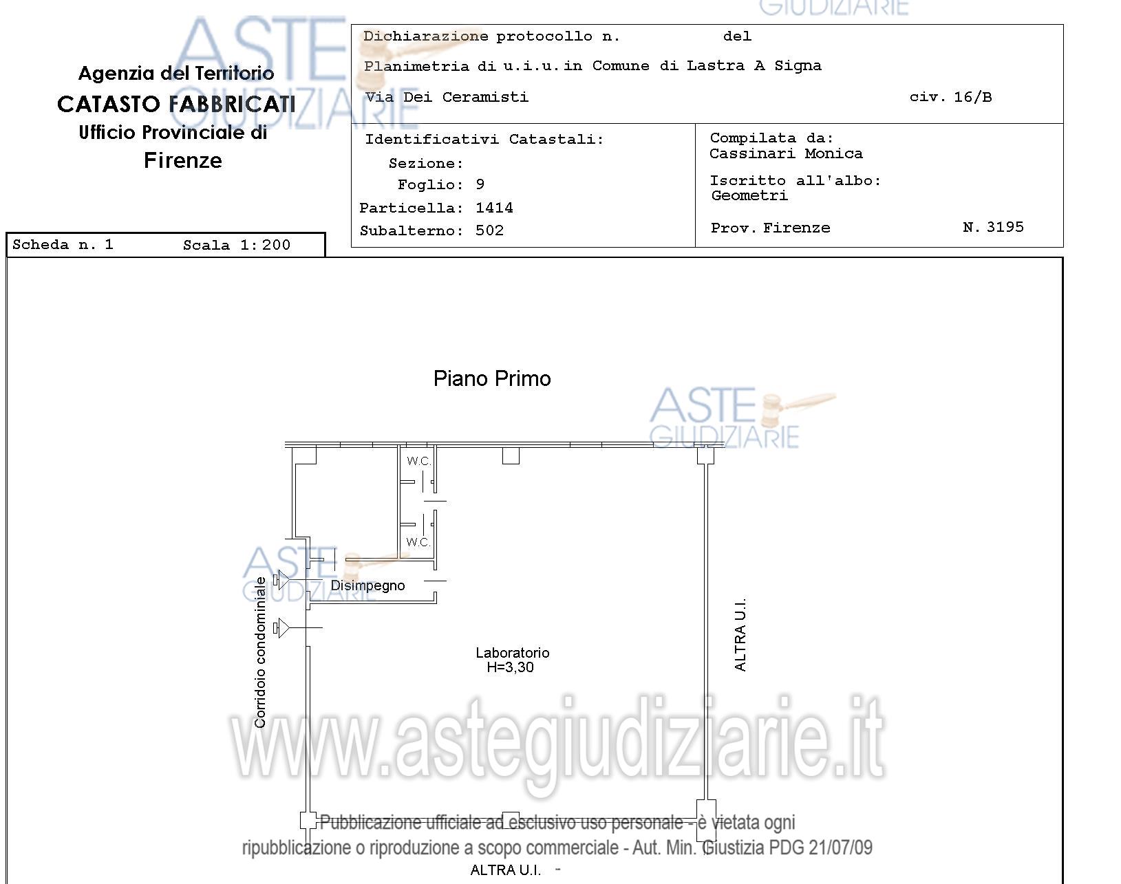 Vendita all'asta Competitiva - LOTTO 1: Unità immobiliare ad uso laboratorio, posta al piano primo, con annesso resede al piano terra, della superficie catastale di mq. 198. Il bene risulta libero. Prezzo base € 114.670,00 (offerta minima € 86.000,00). Data vendita 24/02/2026 ore 12:00. Giudice Rosa Selvarolo. Professionista delegato alla vendita Not. Vincenzo Gunnella. Curatore Dott. Gian Pietro Castaldi - Email "studiogpcastaldi@gmail.com". Rif. Tribunale di Firenze - Liquidazione giudiziale(cci) n. 45/2024
