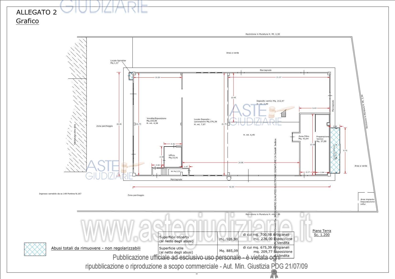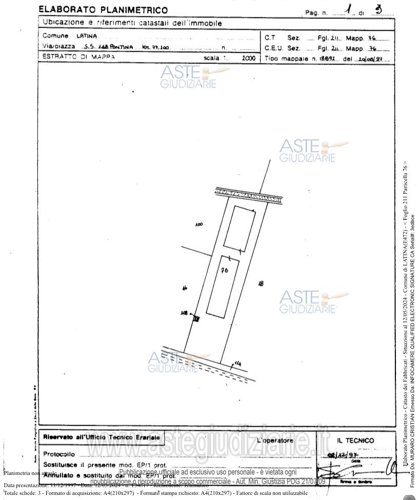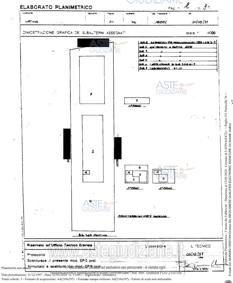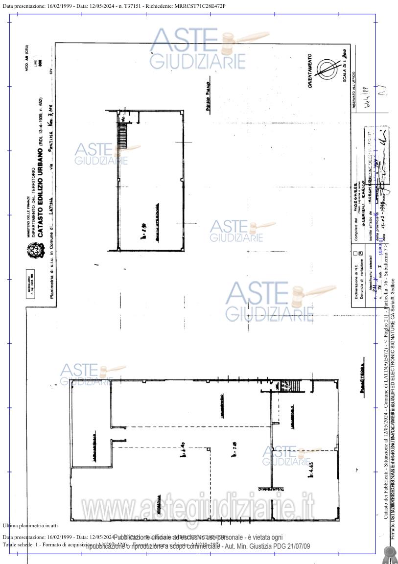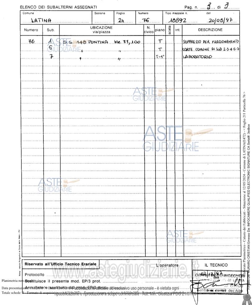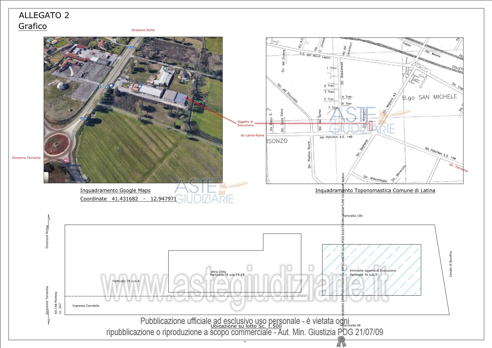 Vendita all'asta Senza incanto, con gara telematica asincrona - LOTTO UNICO: diritto di piena proprietà (1/1) di fabbricato artigianale ubicato a Latina (LT), S.S. 148Pontina n. 167, piano T-1, distinto nel Catasto Fabbricati del Comune di Latina al Foglio 211,Particella 76, Sub. 7, Zona cens. 2, Categoria C/3, Classe 1, Consistenza 1.127 mq.,Superficie catastale 1.142 mq., Superficie convenzionale 942,77 mq., Rendita €. 4.190,74,compresa quota di comproprietà di 924/1970 della corte comune, piano T, individuata inCatasto al Foglio 211, Particella 76, Sub. 6. Prezzo base € 522.208,13 (offerta minima € 391.656,10). Data inizio operazioni di vendita: 21/04/2026 ore 15:00. Professionista delegato alla vendita Avv. Rinaldo Perroni - Email "avv.rinaldoperroni@libero.it"; Tel. 3291324610. Custode Giudiziario Avv. Rinaldo Perroni - Email "avv.rinaldoperroni@libero.it"; Tel. 3291324610. Rif. Tribunale di Latina - Espropriazione immobiliare (cartabia) n. 92/2023