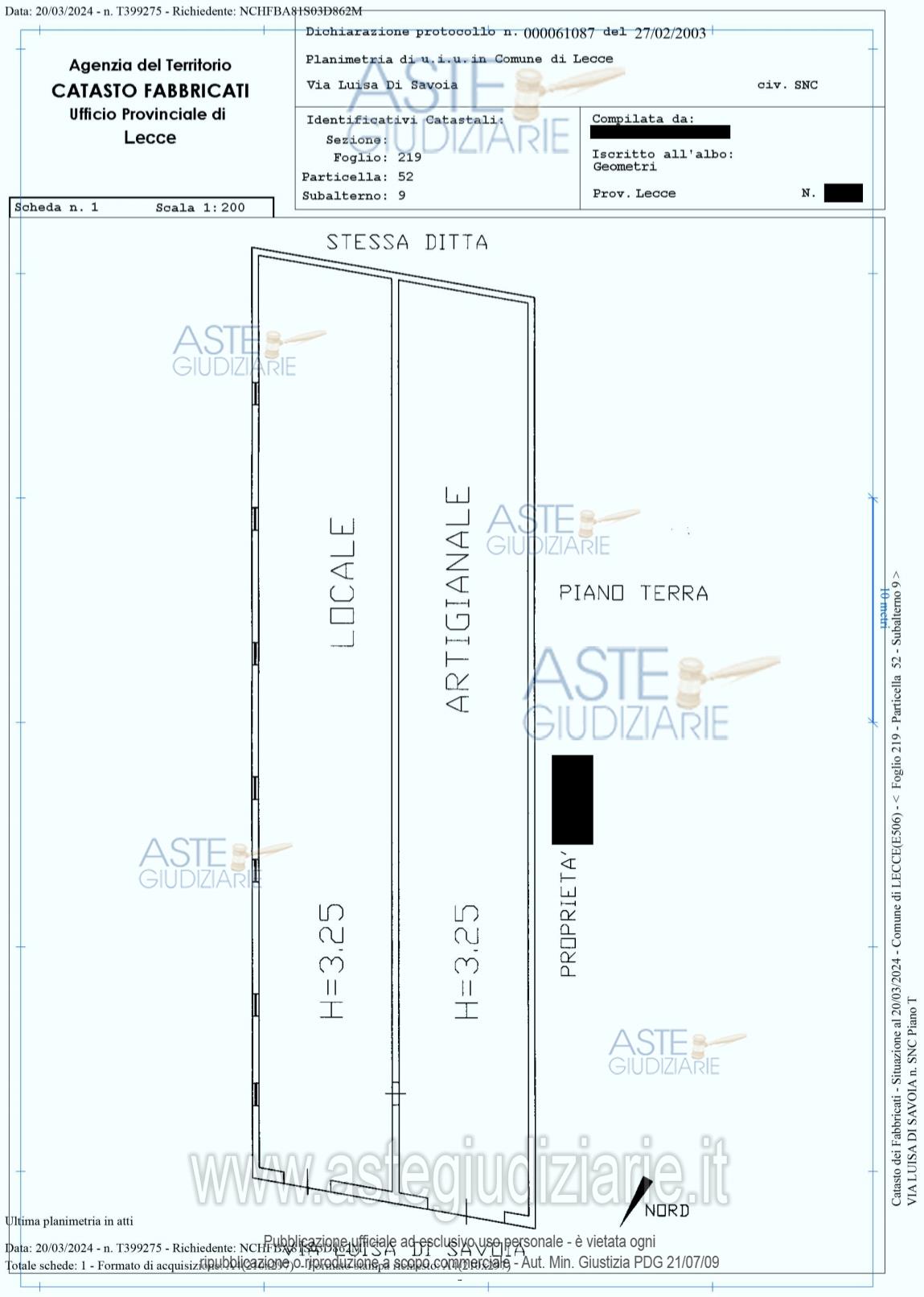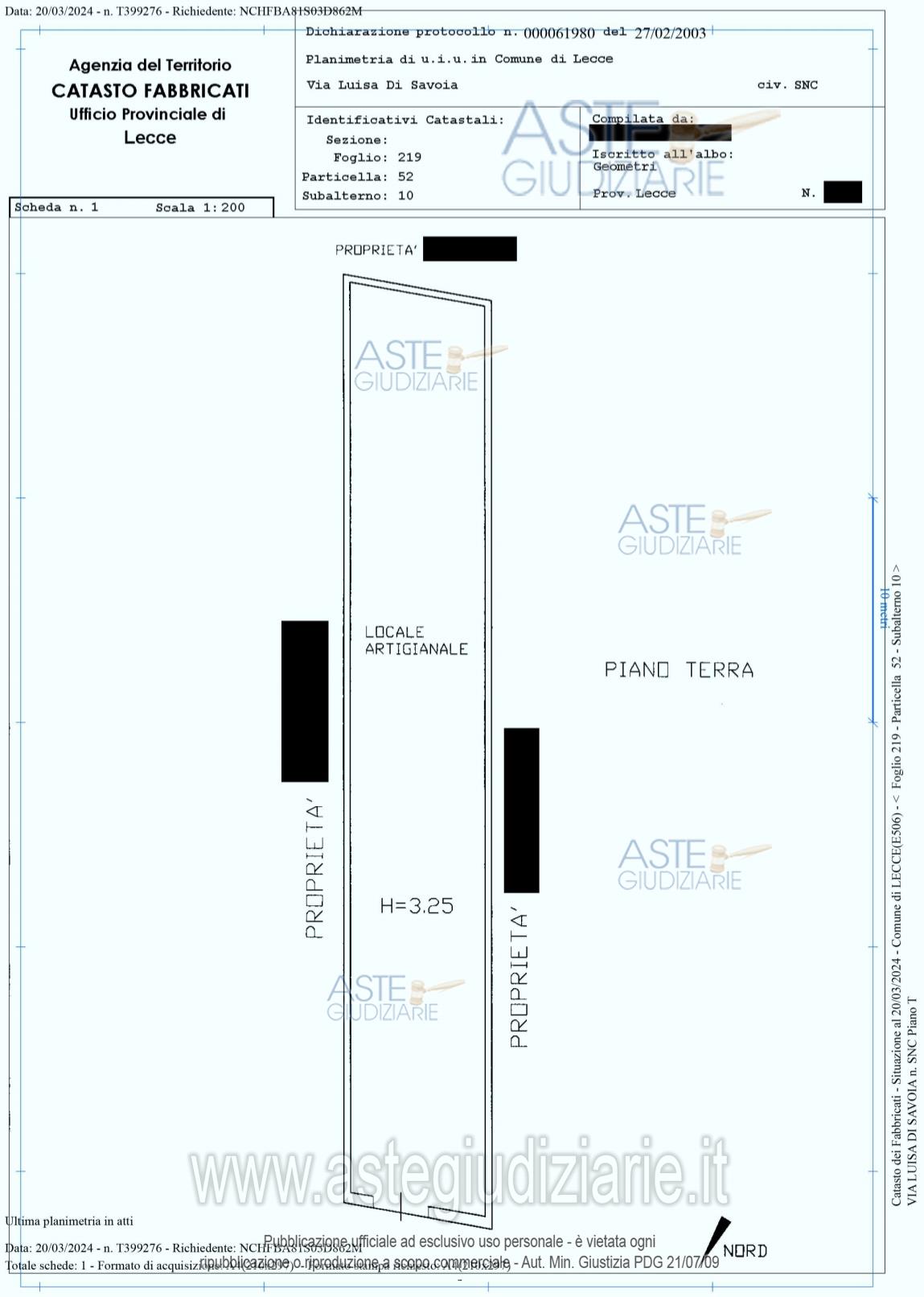 Vendita all'asta Senza incanto, con gara telematica asincrona - LOTTO 1:  Piena proprietà per la quota di 1000/1000 del corpo pignorato, classificato come Laboratorio artigianale, sito in via Luisa di Savoia a Lecce.Il corpo è posto al piano Terra e sviluppa una superficie reale lorda di 510,00 mq. Prezzo base € 124.468,59 (offerta minima € 93.351,44). Data inizio operazioni di vendita: 10/11/2025 ore 10:00. Professionista delegato alla vendita Avv. Marco Campa - Email "campamarcom@gmail.com"; Cell. 3470816546. Custode Giudiziario Avv. Marco Campa - Email "campamarcom@gmail.com"; Cell. 3470816546; Tel. 3470816546.  Rif. Tribunale di Lecce - Espropriazione immobiliare (cartabia) n. 26/2024