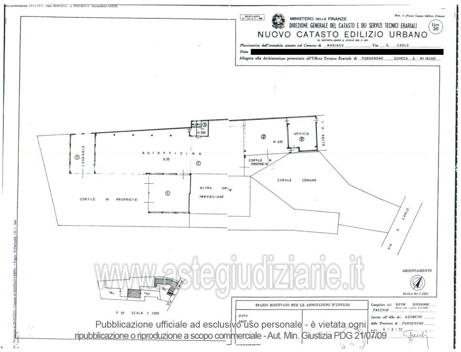 Vendita all'asta Senza incanto - LOTTO 1: Fabbricato di un piano fuori terra con destinazione d’uso dei locali a autofficina, lavaggio, ufficio, wc e dell’area scoperta pertinenziale. Area pertinenziale in zona B.2 - residenziali di consolidamento e completamento estensive. Prezzo base € 37.462,50 (offerta minima € 28.097,00). Data vendita 17/03/2026 ore 15:00. Giudice Dott. Antonio Albenzio. Professionista delegato alla vendita Not. Annalisa Gandolfi - Email "agandolfi@notariato.it". Custode Giudiziario Ass. Not. Custode Giudiziario - Email "custodi@associazionenotarile.pn.it"; Tel. 3294536349. Rif. Tribunale di Pordenone - Esecuzione immobiliare post legge 80 n. 61/2010