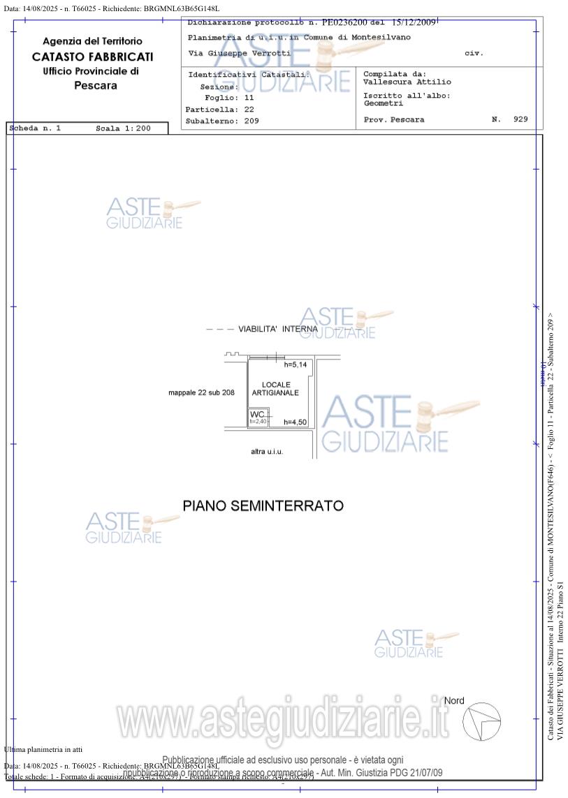 Vendita all'asta Senza incanto, con gara telematica asincrona - LOTTO UNICO: Intera proprietà di un laboratorio artigianale consoppalco praticabile. Prezzo base € 38.321,16 (offerta minima € 28.740,87). Data inizio operazioni di vendita: 05/05/2026 ore 09:00. Professionista delegato alla vendita Avv. Gabriella Pierangelo. Custode Giudiziario Avv. Gabriella Pierangelo - Email "gabriellapierangelo11@gmail.com". Rif. Tribunale di Pescara - Espropriazione immobiliare (cartabia) n. 89/2025