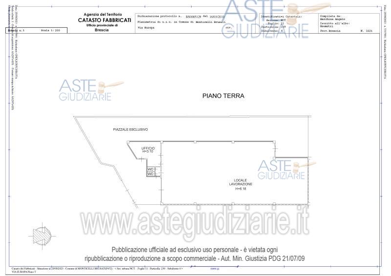 Vendita all'asta Senza incanto, con gara telematica asincrona - LOTTO 1: Piena proprietà di immobile produttivo artigianale con servizi igienici, ufficio e corte comune. E' presente una cabina metallica prefabbricata attrezzata a centrale termica. Prezzo base € 270.900,00 (offerta minima € 203.175,00). Data inizio operazioni di vendita: 11/12/2025 ore 11:00. Professionista delegato alla vendita Not. Maria Canzano - Email "mcanzano@notariato.it"; Tel. 030222849. Custode Giudiziario Not. Maria Canzano - Email "visiteimmobili@anpebrescia.it". Rif. Tribunale di Brescia - Esecuzione immobiliare post legge 80 n. 36/2023