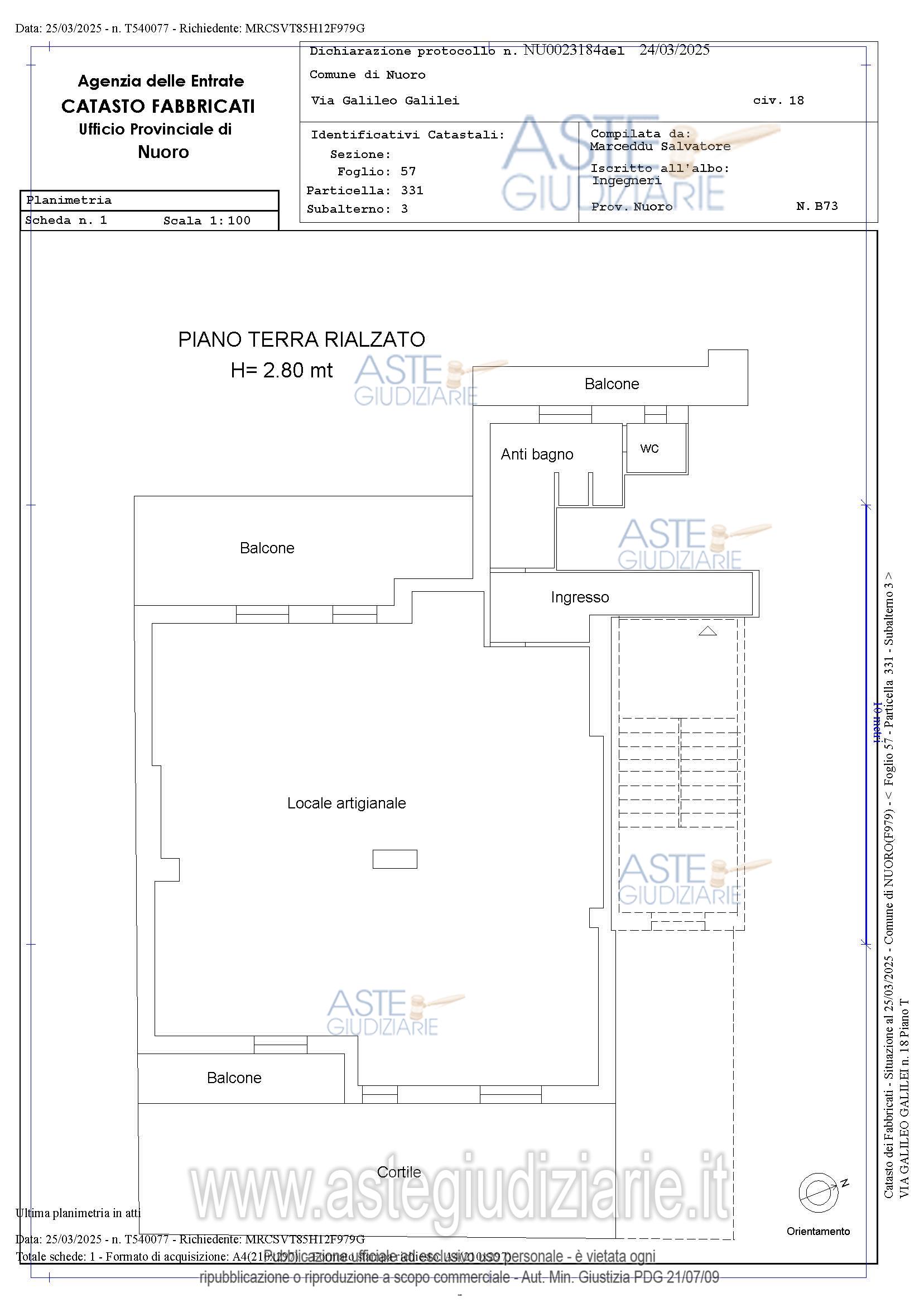 Vendita all'asta Senza incanto, con gara telematica asincrona - LOTTO 1: Laboratorio Artigianale. Prezzo base € 60.000,00 (offerta minima € 45.000,00). Data inizio operazioni di vendita: 28/04/2026 ore 12:00. Giudice Dott. Denise Ecca. Professionista delegato alla vendita Avv. Giampiero Serra - Tel. 078433900 – 3288012283. Custode Giudiziario Ivg Tempio Pausania - Email "visite.ivgnuoro@gmail.com"; Tel. 079630505. Rif. Tribunale di Nuoro - Espropriazione immobiliare (cartabia) n. 35/2023